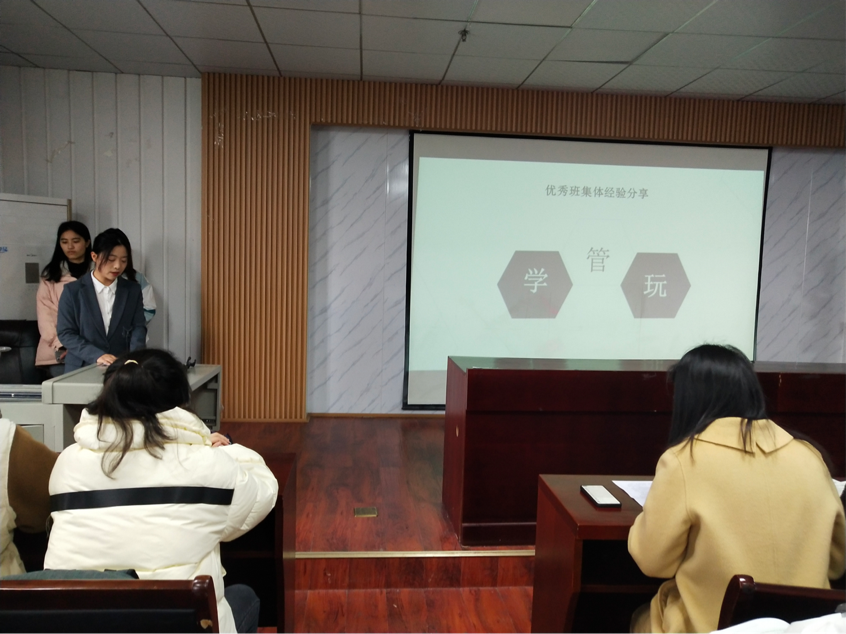 交流会上,来自2004班的班长黄红分享了她的工作经验。在分享交流会中,她用“学、管、玩”三个字概括了她的管理方式。一是课堂“学”,课后练。她们班注重专业词汇的积累拓展,并且强化其语言实践能力的训练,在课后班级同学也积极参加商务英语相关比赛并取得了优异成绩。二是“管”,团队协作,有分工。她认为一个优秀的班委群体,需要秉承“团队协作,有总有分”的宗旨。在面对作业布置,班级活动组织,安全知识宣讲等活动时要做到分工明确,落到实处有实效。三是“玩”,营造分为促提升。她认为融洽的班级氛围是建立在良好的班级关系上的。因此,她们班经常积极组织开展班级活动,增进同学感情,为良好的班级管理搭建了平台。交流会上,她还对肯定班委工作的老师表达了感激之情,同时也对支持班委工作的同学表达了感谢之意。