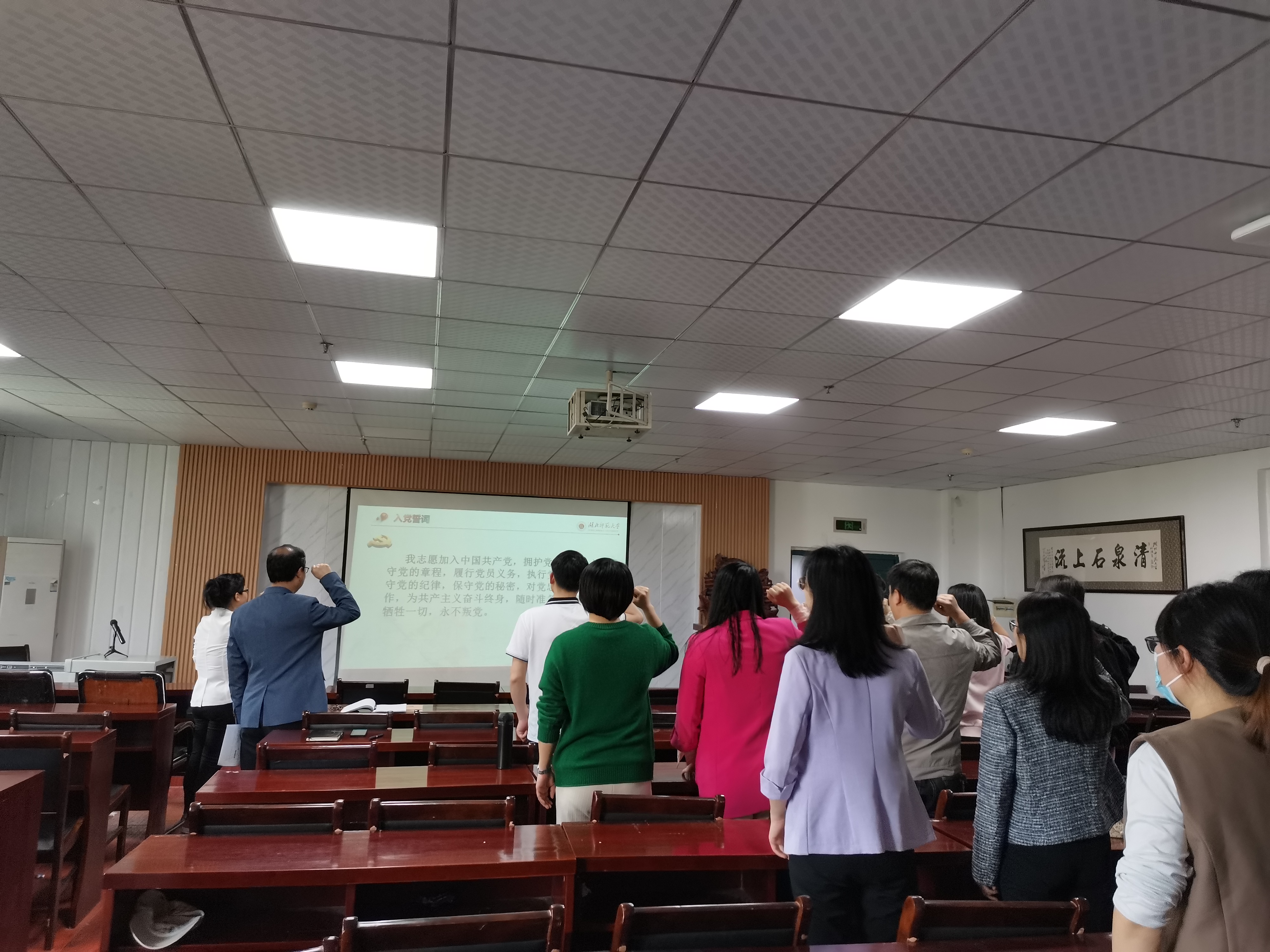 活动最后一项,每位党员教师发表了对此次主题党日的学习体会,并分享自己的学习心得。李前同志表示,通过本次学习,深刻感受到,理想信念是立党兴党之基,也是党员干部安身立命之本。年轻干部接好班,最重要的是接好坚持马克思主义信仰、为共产主义远大理想和中国特色社会主义共同理想而奋斗的班。坚定理想信念,必先知之而后信之,信之而后行之。坚定理想信念不是一阵子而是一辈子的事,要常修常炼、常悟常进,无论顺境逆境都坚贞不渝,经得起大浪淘沙的考验。我们站在教育岗位的最前沿,传授知识的同时,更要注意培养我们师范生的这种坚定理想信念。李端奇同志表示,通过对两会精神的学习,我感受最深的是两个字“担当”。只有全党继续发扬担当和斗争精神,才能实现中华民族伟大复兴的宏伟目标。担当和斗争是一种精神,最需要的是无私的品格和无畏的勇气。无私者无畏,无畏者才能担当、能斗争。担当和斗争是一种责任,敢于负责才叫真担当、真斗争。