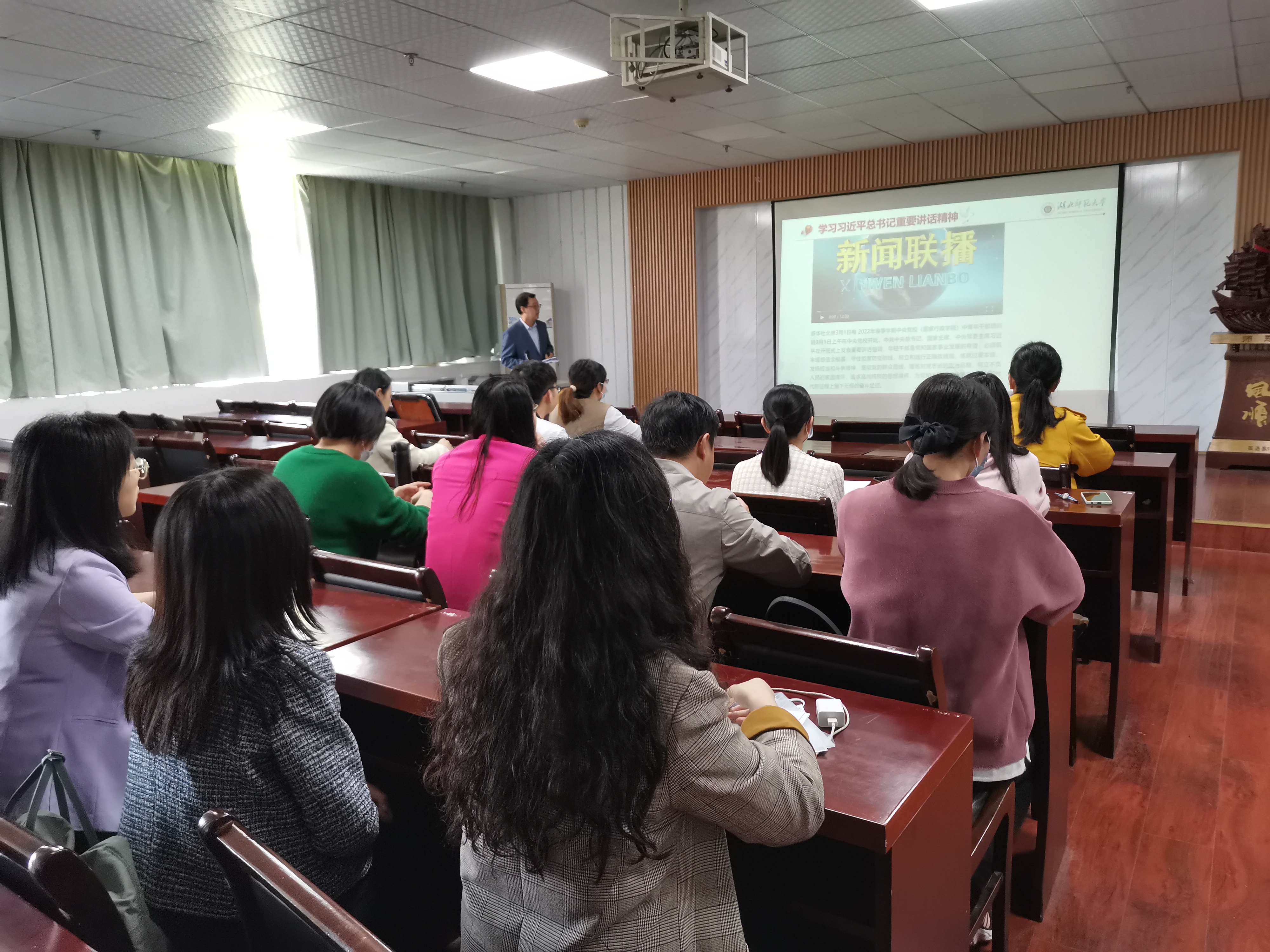 4月20日中午,成人短视频 教工第一党支部在人文楼B座603会议室开展4月主题党日活动。本次主题党日围绕着“建强组织筑堡垒 服务中心作贡献”展开,支部党员重点学习了习近平总书记重要讲话精神、总书记关于总体国家安全观的重要论述,以及开展认人认亲认岗认事活动。会议由支部纪检委员杨钢同志主持,支部全体党员教师参加会议。