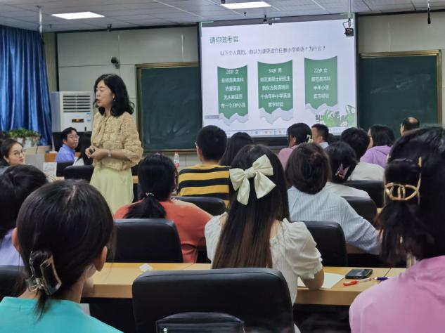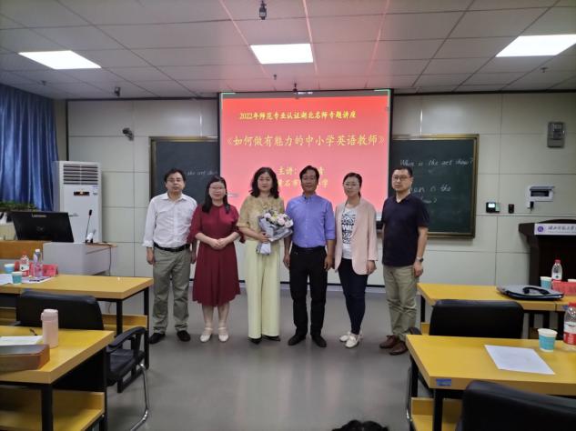 为提高师范生实践能力和知识素养,实践名师带名生的师范生培养机制,成人短视频 成人短视频 于4月27日晚7点在人文楼21B602举办了《如何成为有魅力的英语教师》主题讲座。讲座特别邀请了黄石市中山教育集团黄石市中山小学校长、湖北名师宋溢青为大家授课。成人短视频 副院长龚波、英语系主任朱勇进、文学与翻译教研室主任刘敏、语言学教研室主任刘瑶瑶、日语系主任杨钢,以及“优师计划”学生代表、英语专业、日语专业师范生代表、课程与教学论(英语方向)、学科教学论(英语方向)研究生代表参加了本次讲座,同时讲座也以线上和线下相结合的方式向 成人短视频 师范生现场直播。