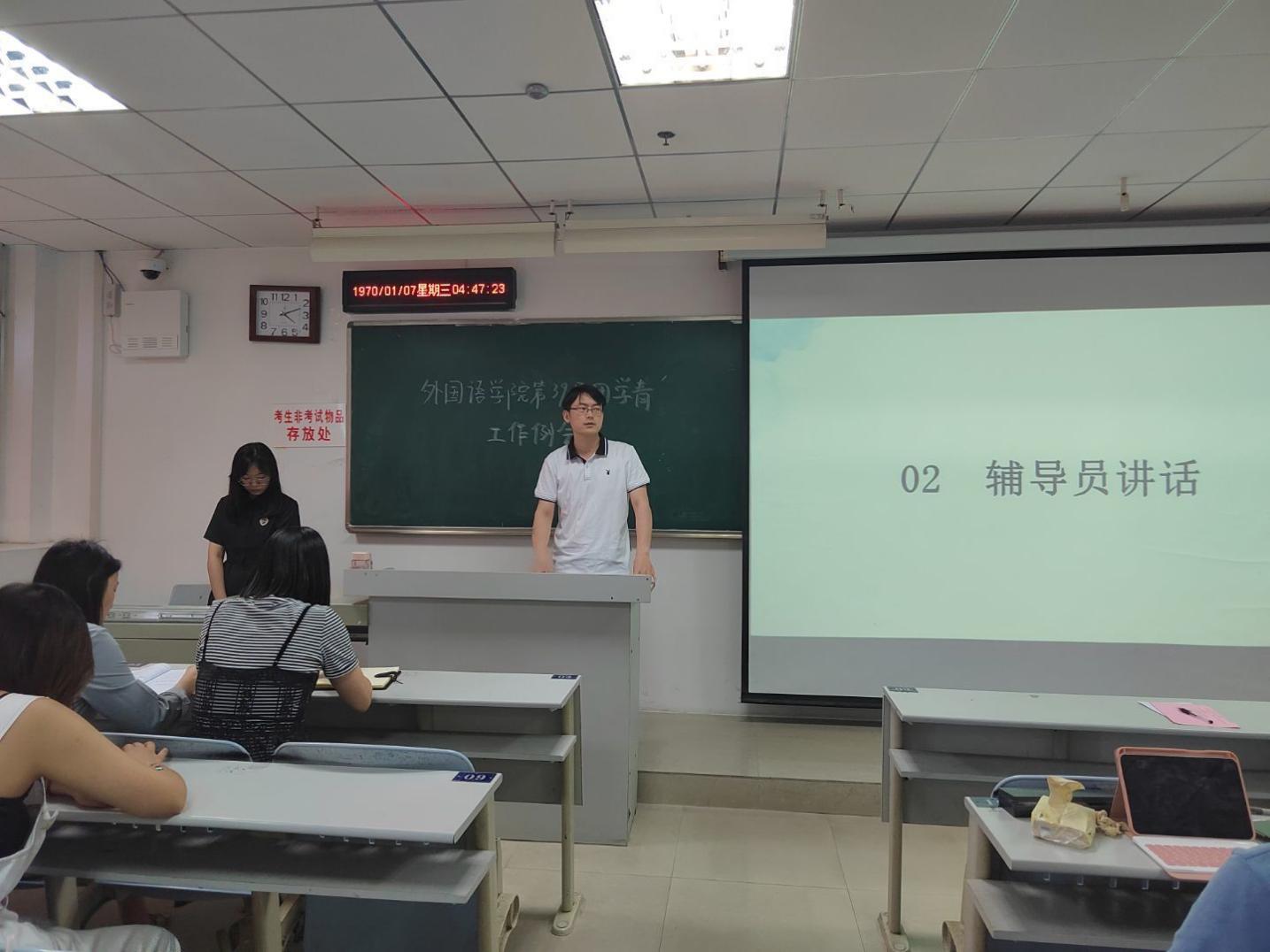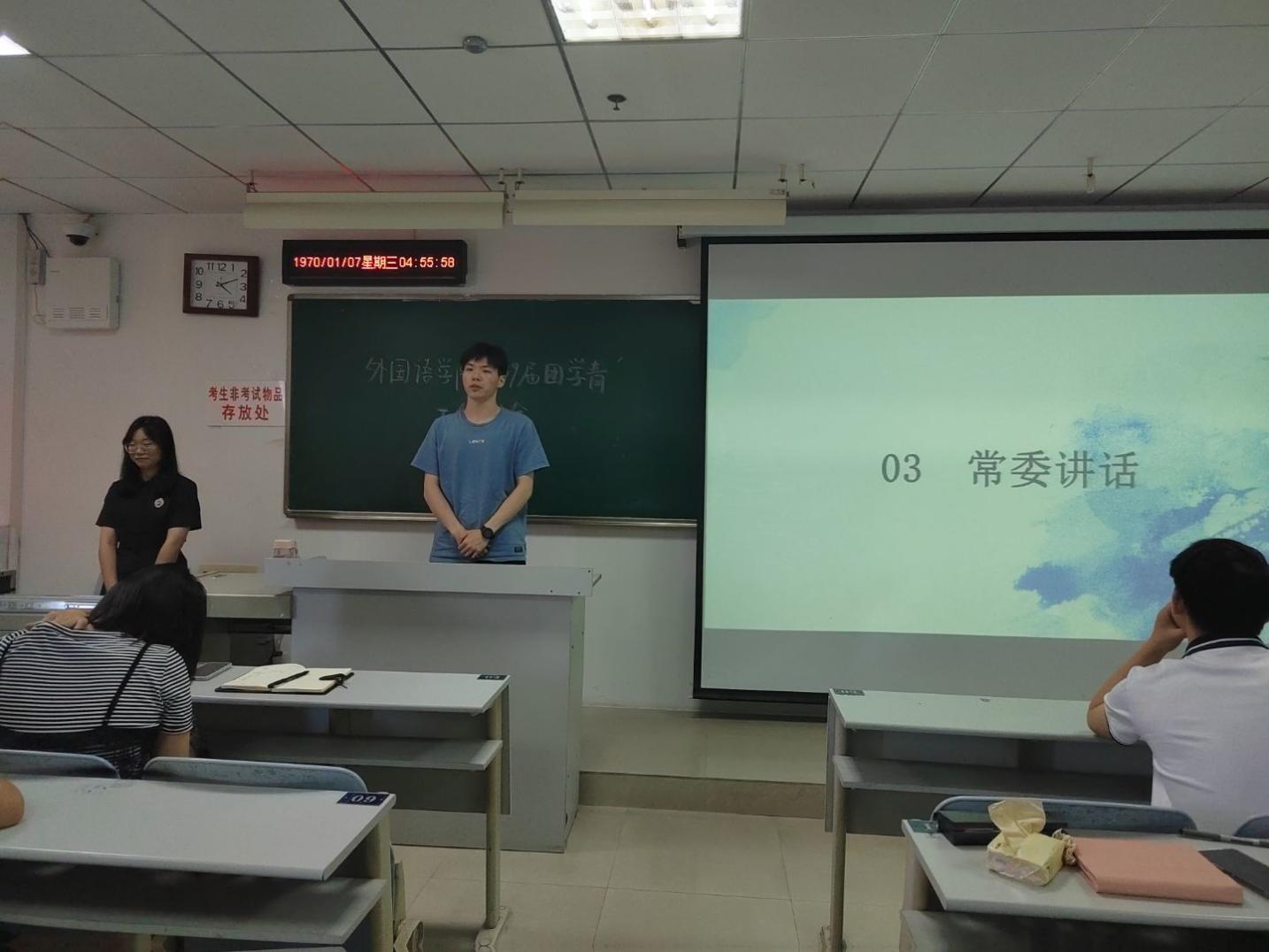 2022年5月5日中午12时,成人短视频 在人文楼21B508召开了团学青工作例会。参与此次会议的有辅导员老师黄志军、关巧、杨梦伟,常委及各部门部长。
