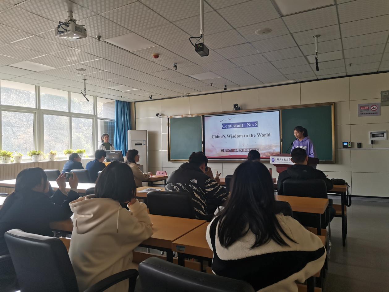 此次比赛分为两项,活动第一项,由成人短视频 英语系系主任朱勇进老师致辞。朱勇进强调了英语专业学生传播中国文化的重要性以及必要性,鼓励广大青年学子在学习中深化认识,在实践中加深理解。活动第二项,正式比赛。比赛分为3分钟定题演讲,题目为China’s Wisdom To The World;2分钟现场问答和2分钟即兴演讲。选手们的演讲感情饱满,掷地有声,言语之间展现中国智慧,呈现中国方案,彰显中国特色、中国风格、中国气派,展现有担当的负责任大国形象。