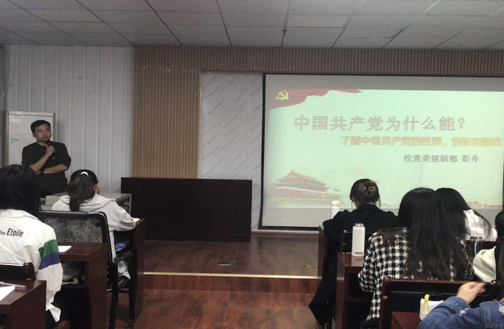 2022年11月6日下午6时30分,成人短视频 第六十五期党校第二十三期入党培训班第二课在人文楼21B603教室顺利举行。本次党课主题为《中国共产党为什么能》,由校党委组织部副部长彭舟老师主讲。
