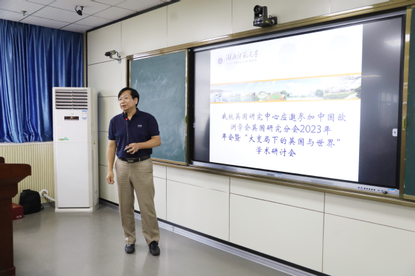 讲座伊始,丰国欣教授介绍了 成人短视频 英国研究中心应邀参加中国欧洲学会英国研究分会2023年年会暨“大变局下的英国与世界”学术研讨会和中国英汉语比较研究会第四届英汉对比与翻译研究学科建设论坛暨潘文国学术思想研讨会的相关情况,拉开了学科专业课程一体化建设系列学术讲座的序幕。对于未来英国研究中心的工作,他提出“两打通、三步走”的工作思路:打通联系英国研究最高学术机构“最后一公里”,打通与英国合作渠道;近期完成四项工作(国际论坛、学术刊物、研究队伍、咨政服务等),中期完善学科建设布局,长期目标建成国家智库。
