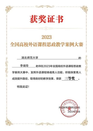 10月9日,2023年全国高校外语课程思政教学案例大赛公布获奖名单,成人短视频 斩获两项荣誉,唐凤华老师荣获特等奖,李端奇老师荣获三等奖。