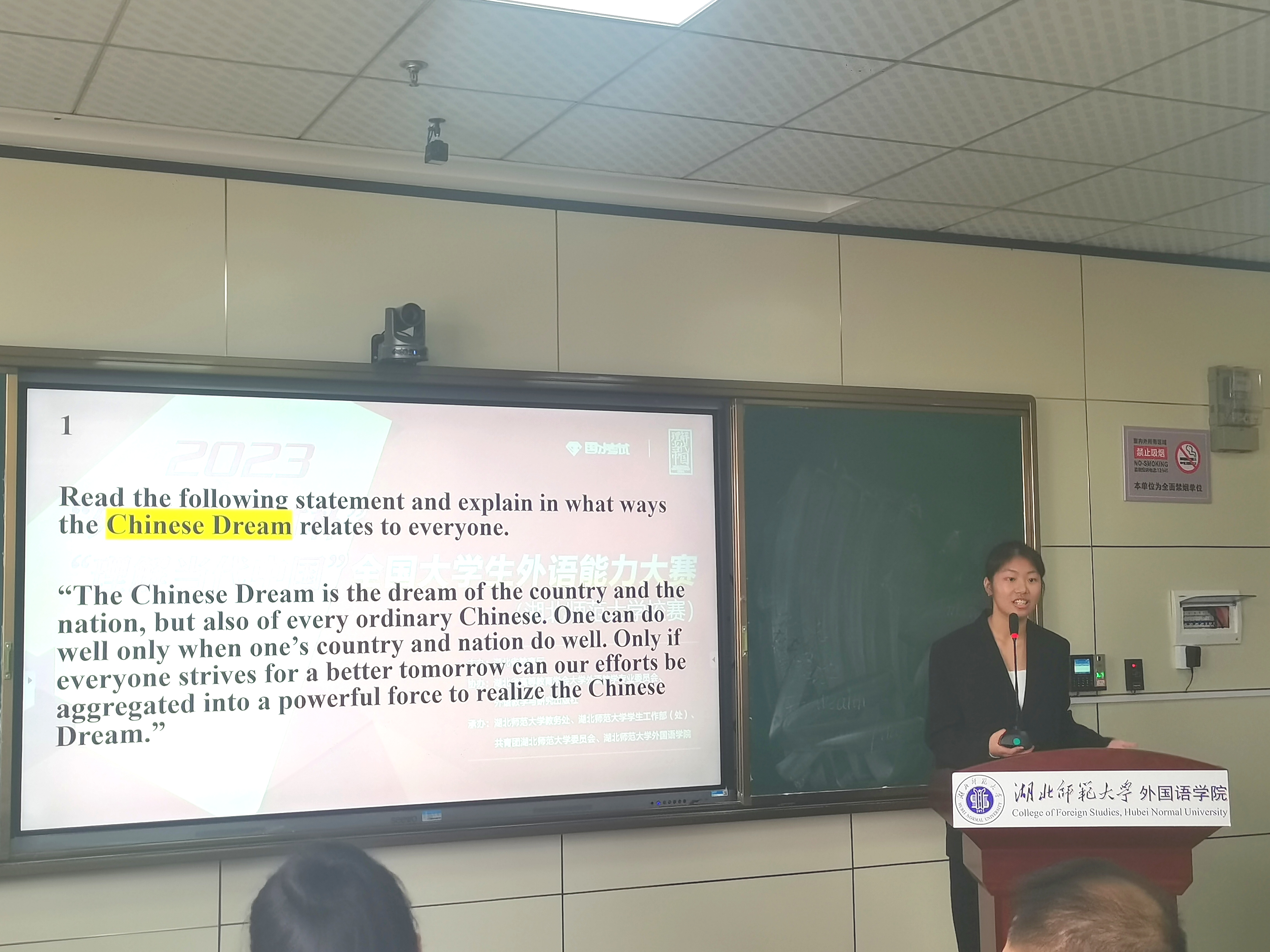 为深入贯彻党的二十大精神,落实立德树人根本任务,为国家培养更多有家国情怀、有全球视野、有专业本领的高水平国际化人才,1012日下午,成人短视频 2023年“外研社·国才杯”“理解当代中国”全国大学生英语演讲比赛校园决赛在人文大楼21B602顺利举行。 经过激烈的角逐,余波、江珊和高晨瑶等三位同学分别荣获此次决赛的前三名。 三位优秀选手将代表成人短视频 参加将于10月底举行的2023“外研社•国才杯”“理解当代中国”英语演讲大赛湖北省省级比赛。