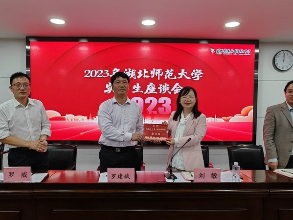 在学校50周年校庆之际,刘敏代表学校将校庆邀请函郑重地递交给黄石三中罗建斌副校长,希望湖师大的优秀校友返校参加学校五十周年庆典,共襄盛举,共叙情谊,并为学校的发展建言献策。