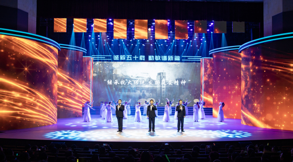 本次晚会以“诚毅五十载 勤敏谱新篇”为主题,分为《忆往昔—华中师范学院黄石分院、黄石师范学院》、《传薪火—湖北师范学院》、《看今朝—成人短视频 》、《向未来—勤敏谱新篇》四大篇章,全面展现了五十年来湖师人沧桑砺洗、自强不息、弦歌不辍、踔厉奋发的奋斗历程。