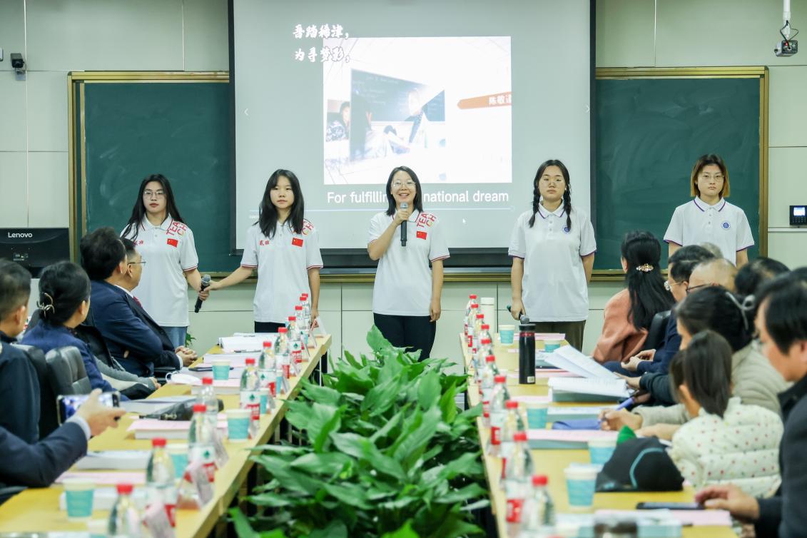 在校学生风采展示环节由学生吴涛杨、李烨两位同学主持。首先呈现的是由苏怦佳等八位同学带来的优秀作品A Red ,Red Rose的精彩演绎,优秀的英国文学作品培养学生对文学的鉴赏能力,并感受文学作品的魅力。接下来是冉唐佳羽同学带来的教师技能展示。她从口语表达,课程内容选材,上课互动等各方面向大家呈现了一名合格的人民教师所具备的职业技能和个人魅力。戏剧表演是表演的一种重要表现形式,具有极强的观赏性,在廖云昊同学带来的《莫扎特传》中,他所饰演的莫扎特,生动形象地诠释了十八世纪那位越挫越勇的音乐家的慷慨与昂扬。刘圆和郭立豪同学表演再现了《罗密欧与朱丽叶》的经典场面,令现场的观众赞叹不已。经典诗集选段《我心在高地》,成人短视频 原创诗歌《诗魂》带给观众久久不能忘却的震撼。在校学生风采展示以一首中、英、日、法语合唱的歌曲《友谊地久天长》落下帷幕。