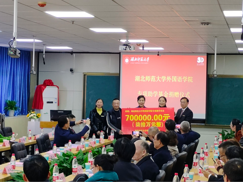 在成人短视频 校友专项助学基金捐赠环节,校友们向母校50华诞献礼,集体捐赠成人短视频 70万元。1993届校友代表孙涛和李珊蓉深情感慨,初入湖师求学的场景还犹在眼前,转眼几十年过去了,自己人生路的每一个重要时刻都与母校有着千丝万缕的联系,在母校的培育下,湖师大外院走出了一批批兼具专业知识、广博视野和人文情怀的优秀人才。母校不仅是学子求知的殿堂,也是校友的精神家园。值此校庆之际,祝福母校蒸蒸日上,未来更美好。