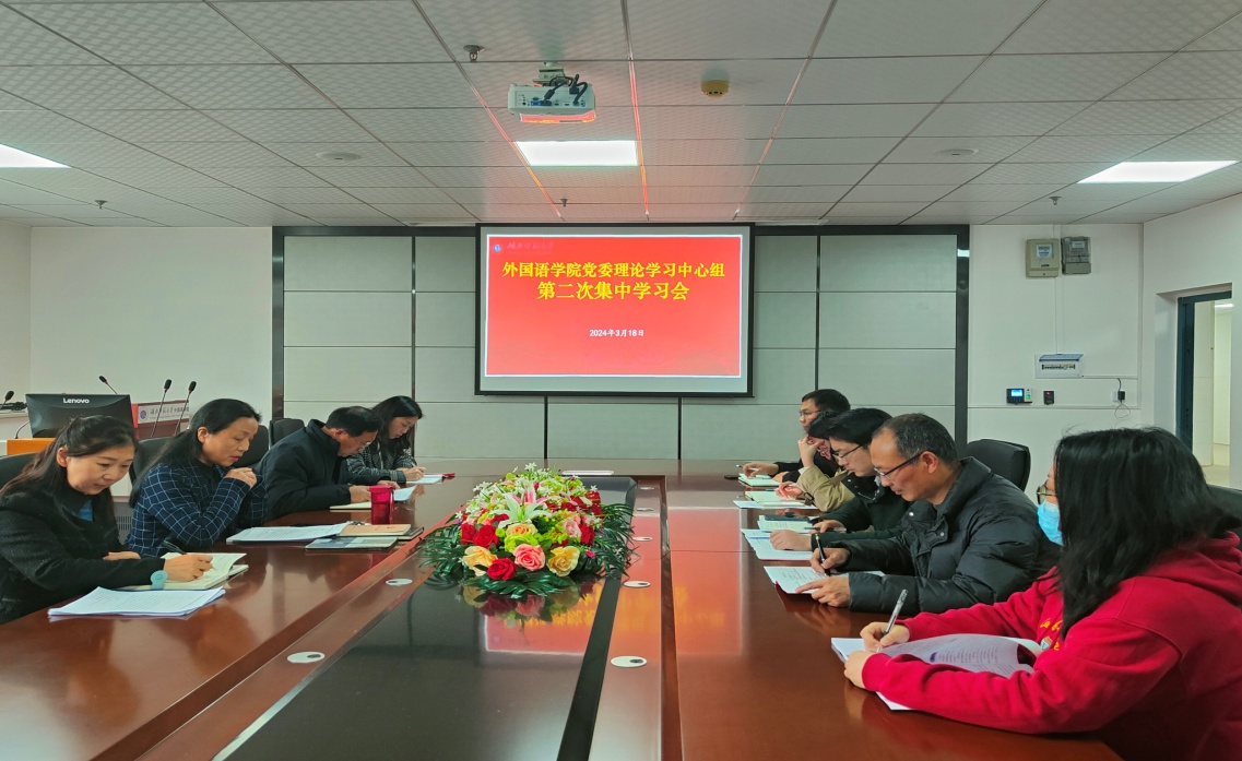 3月18日下午,成人短视频 党委理论学习中心组召开2024年第二次集中学习(扩大)会,党委书记王海燕主持会议并作讲话。外院班子成员,党委理论学习中心组成员,外院各党支部书记参加会议。
