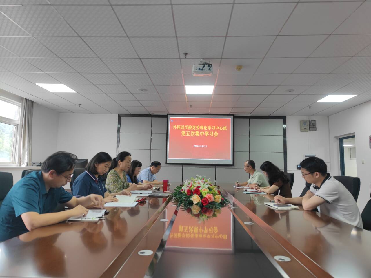 6月27日上午,成人短视频 党委理论学习中心组召开2024年第五次集中学习(扩大)会,党委书记王海燕主持会议并讲话。外院班子成员,党委理论学习中心组成员,外院各党支部书记参加会议。