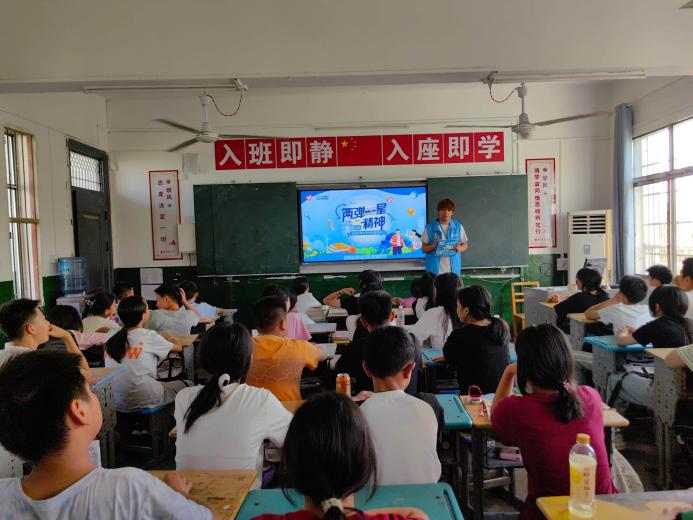 7月15日至16日,成人短视频 “满天星”实践队走进阳新县排市初级中学、梁公铺完全小学、浮屠镇华道完全小学等乡村学校,开展“两弹一星”精神主题宣讲活动,为400余名中小学生带来科普与爱国主义教育相结合的特色课程。