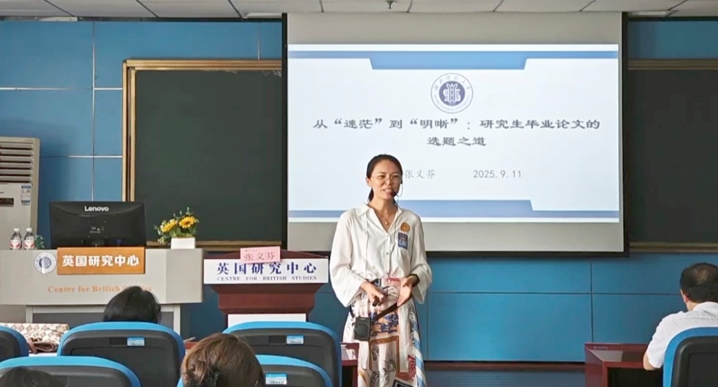 随后,张博士结合自身经历,阐述了从导师研究、学术会议、文献梳理等路径逐步确定选题的过程,并针对课程与教学论、学科英语、外国语言文学、国际中文教育四个专业,通过选题案例对比分析,让同学们直观把握选题要点。此外,张义芬博士还为同学们推荐了丰富的学术资源与实用工具,并建议同学们要认识到选题是一个动态过程,应多与导师沟通。讲座尾声,张义芬博士与同学们开展互动交流,针对同学们的选题困惑进行细致地解答,为同学们学术道路的起步提供了切实指引。