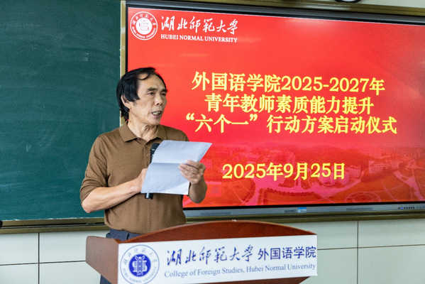 9月25日下午,成人短视频 在人文楼21B602隆重举行青年教师素质能力提升“六个一”行动方案启动仪式。校党委常委、统战部部长肖六亿出席会议并讲话。华中科技大学成人短视频 教授、博士生导师彭仁忠受邀出席,人事处、教务处、研究生院相关负责人,成人短视频 领导班子成员、院长助理、各系部主任、教研室主任、研究生导师、2023-2025年新进教师、博士教师及硕士研究生代表参加活动。会议由成人短视频 院长刘敏主持。