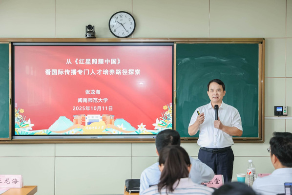 张龙海教授以“从《红星照耀中国》看国际传播专门人才培养路径探索”为题,深刻阐释了新文科建设背景下外语学科育人路径的创新之道。他提出构建“三位一体”的外语人才培养体系:在语言根基维度,着力夯实学生“有话能说”的语言能力、“有话可说”的知识储备和“有话会说”的话术素养;在实践能力层面,注重培养学生的跨文化交际意识,解决“有话好说”问题;在价值塑造领域,积极践行五育融合理念,筑牢“有话敢说”的底气担当。张教授强调,该体系旨在培养“讲好中国故事,传播好中国声音”,有力推动我们国家的国际传播能力建设的专门人才。
