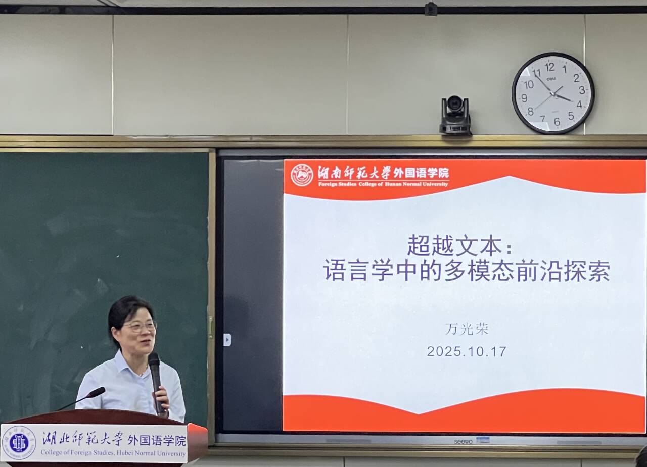 万光荣教授的讲座题目为“超越文本:语言学中的多模态前沿探索”。讲座聚焦多模态研究在语言学中的创新价值,结合国家战略需求,提出中国国家形象建构、解决人工智能领域中情感程度判断不准的问题、响应“健康中国”战略的三大应用方向,为探索多模态语言学研究的新路径,为跨领域合作与应用提供了理论支持与实践方案。