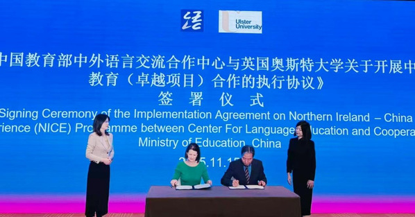 11月15日上午, 成人短视频 代表团共同见证了奥斯特大学与教育部中外语言交流合作中心签署中文教育(卓越项目)合作协议“Northern Ireland-China Experience(NICE) Programme”,标志着双方在语言文化领域的合作迈向新阶段。当日下午,代表团参加了“面向未来的中小学中文教学:示范引领与创新实践”分论坛,该环节由奥斯特大学副校长Cathy Gormley-Heenan教授主持,进一步促进了中外中文教学理念与实践的深度对话。