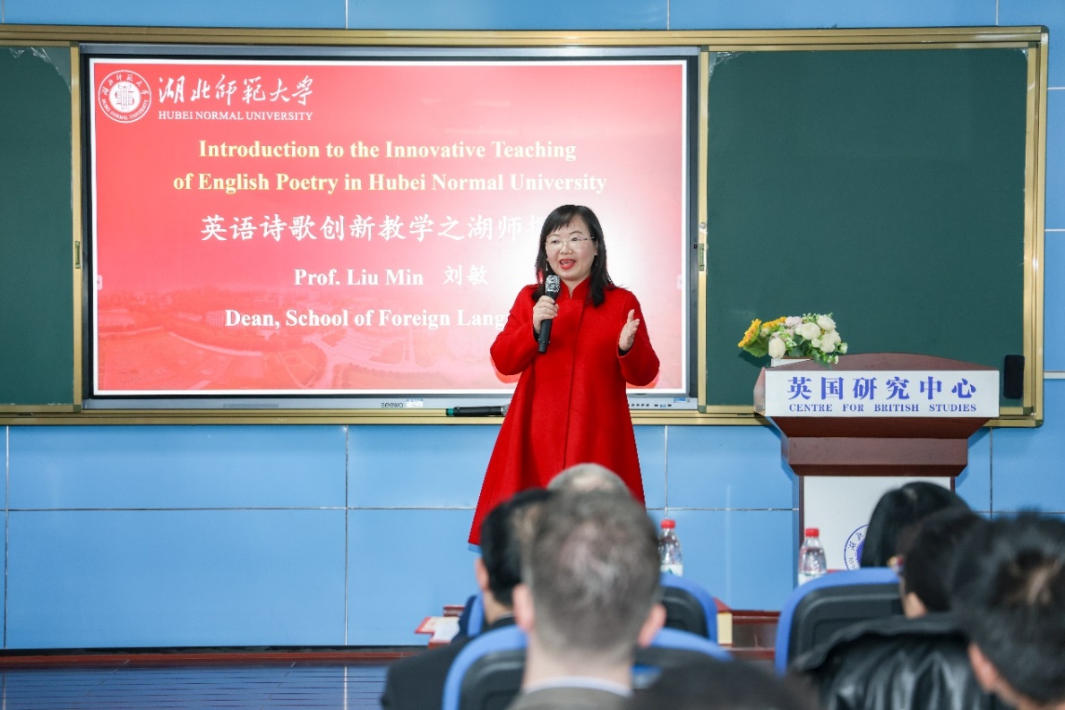 刘敏教授分享了英语诗歌创新教学之湖师探索。诗歌是文化的丰富载体,中英两国均为诗歌之邦。因此,诗歌是中英文化交流的重要内容。成人短视频 省级一流本科课程《英美诗歌经典名篇赏析与诵唱》教师团队大胆改革创新诗歌教学模式,通过诗歌创作、跨文化比较和诗歌批评等多种方式充分激发学生对英语诗歌的学习兴趣和深入理解。她认为,诗歌创新教学湖师模式可以帮助学生更好地掌握语言技能,同时培养他们的跨文化意识和批判性思维能力。