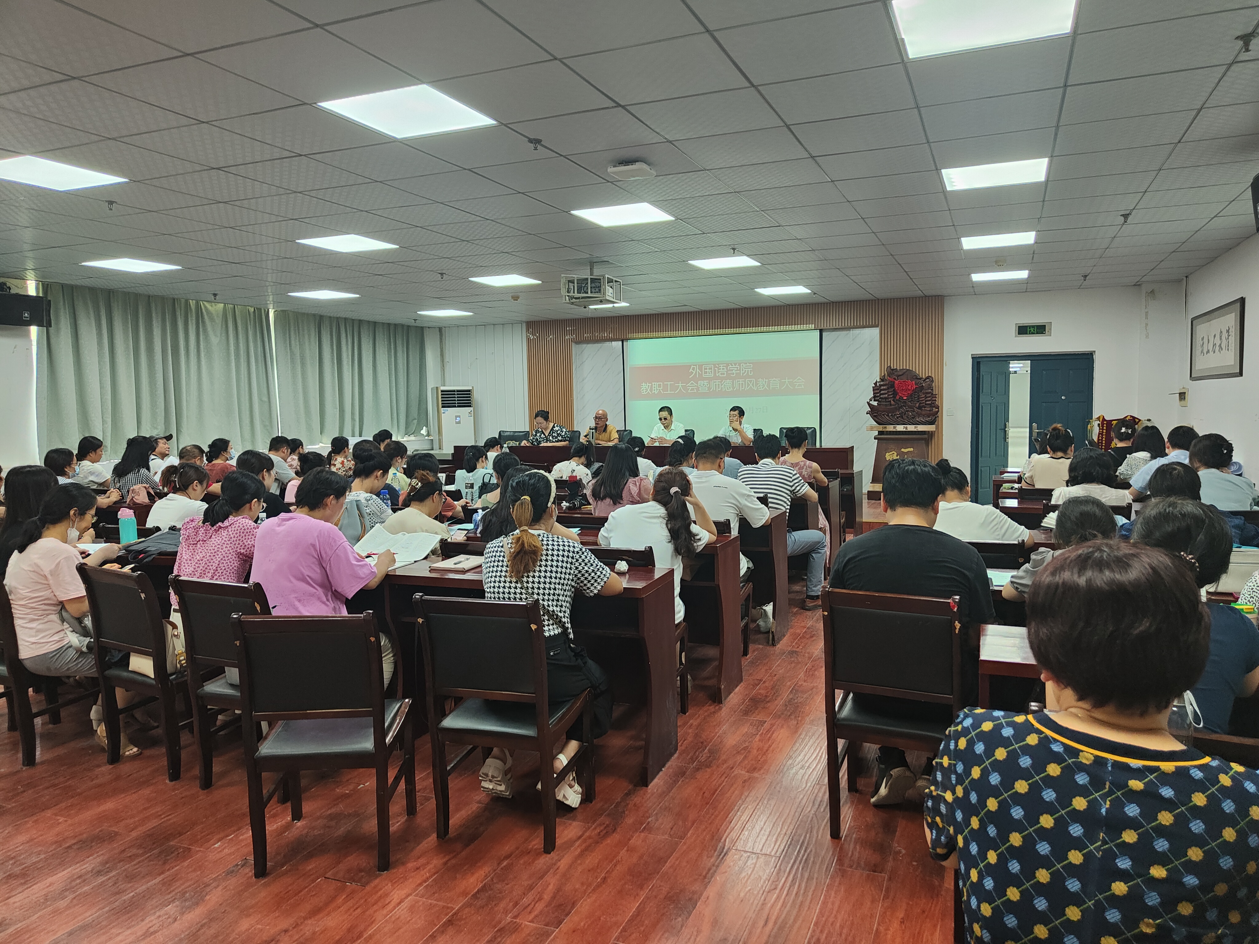 随后,龙友元书记主持召开师德师风教育大会,要求老师们要切实加强师德师风建设,树牢底线意识;坚决抓好意识形态工作,筑牢思想防线,理直气壮讲好新时代思政课;要以饱满的精神状态,全身心投入到新学期工作中去,着力推动学院发展上新的台阶。