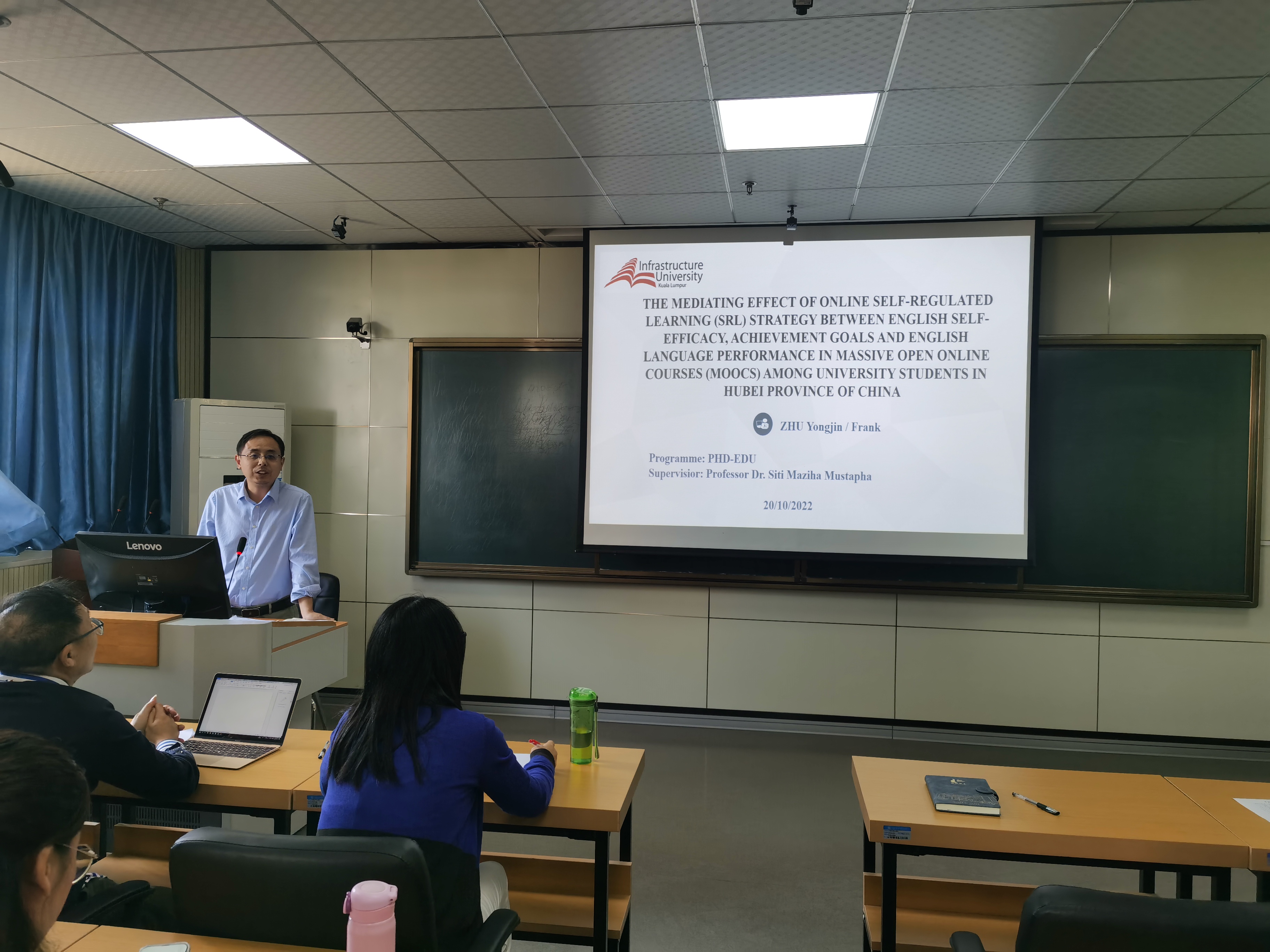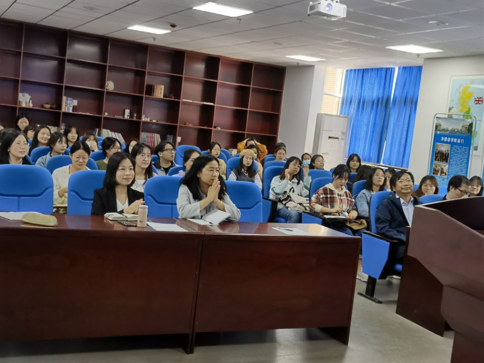 外国语言文学及应用语言学分会场由副院长南潮教授和英语系主任朱勇进副教授主持,英语系全体老师及部分研究生在21B602共同聆听了本次汇报。朱勇进博士以慕课背景下中国大学生英语学习效能、英语成绩,自我调控为主题,为大家介绍了其博士毕业论文写作背景,主要框架及写作体会。董志浩博士的汇报围绕自我调节训练对英语专业学生阅读能力的影响,指出学生阅读能力概念的界定及影响因素,让我们了解到自我调节训练的作用。赵静博士以高校大学英语教师职业倦怠现象为主题,讲述了其选题的目的以及写作过程中如何细化到本研究的自变量和因变量的过程。王璐博士的汇报内容充实,逻辑缜密,使在场师生学习到混合式学习相关的理论价值及实际操作经验。