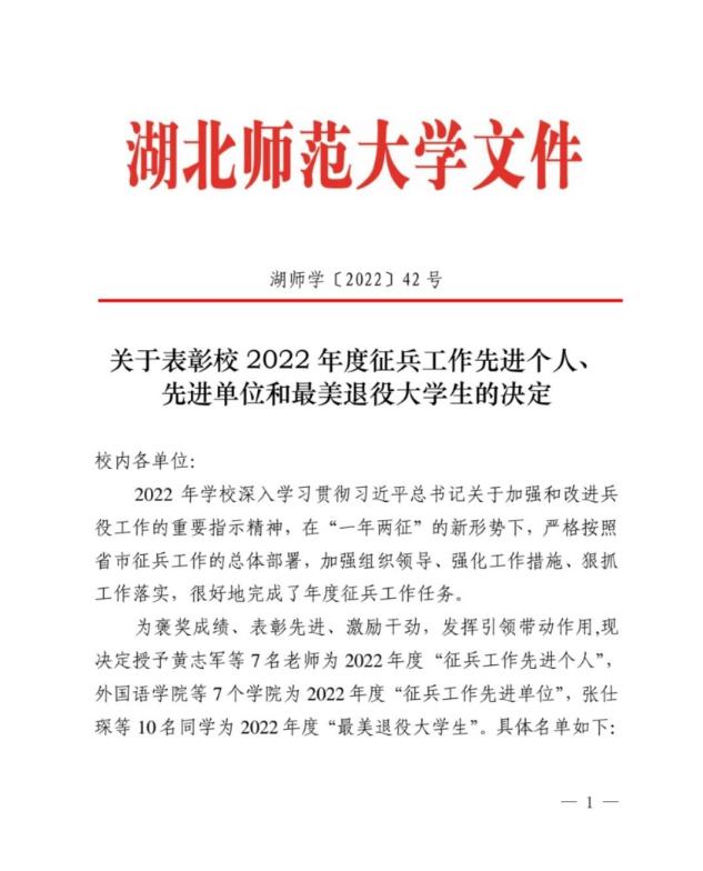 在2022年度征兵工作中,成人短视频 荣获成人短视频 2022年度“征兵工作先进单位”,黄志军老师荣获成人短视频 2022年度“征兵工作先进个人”。部分文件如下: