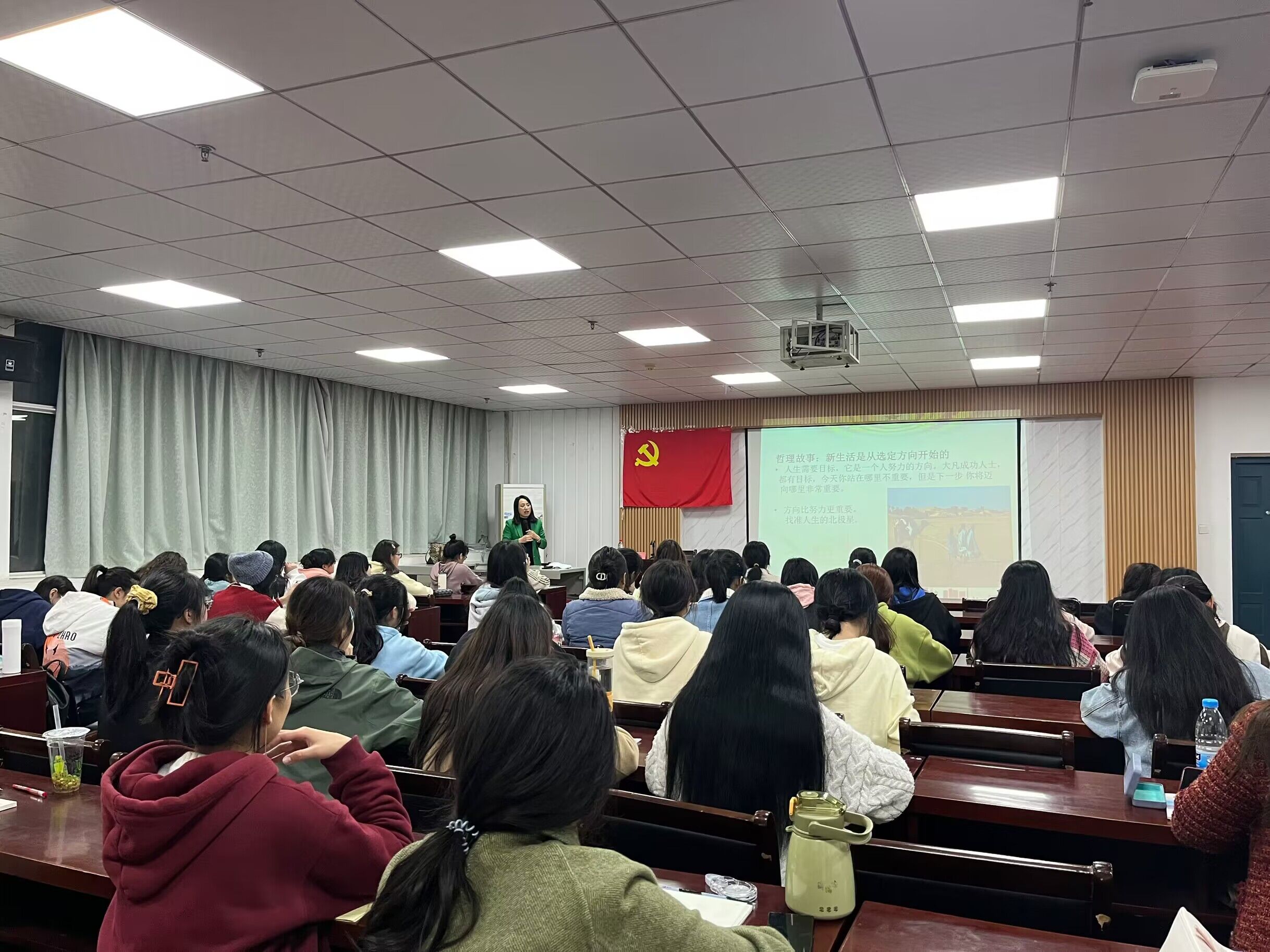 开班典礼结束之后,入党培训班第一讲《正确入党动机的培养》正式开讲,本次课程由成人短视频 学生工作部(处)、人民武装部部长李洁主讲。李洁老师分别从选定人生方向、树立正确的入党动机的重要意义、正确入党动机的内涵、端正入党动机的途径和方法四个方面展开课程,结合党榜样的模范故事,以及从同学们身边的事例出发,向学员们展现了现如今中国共产党领导人民创造的两大奇迹、当代中共党员的初心与使命以及如何树立正确的入党动机。同时,李洁老师也对学员们寄予厚望,希望他们能够主动加强对党理论知识的学习,自觉的接受党组织的培育教育,努力增强党性意识并严格要求自己,用实际行动争取早日入党。让普通党员进党校,就是让每一名党员都能进一次党校、接受一次培训、接受一次洗礼,通过坚持不懈地抓好广大党员的正规化教育培训工作,有效改变党员队伍的知识结构,增强党员干事创业的实际本领,能够更有效地巩固党的执政基础。