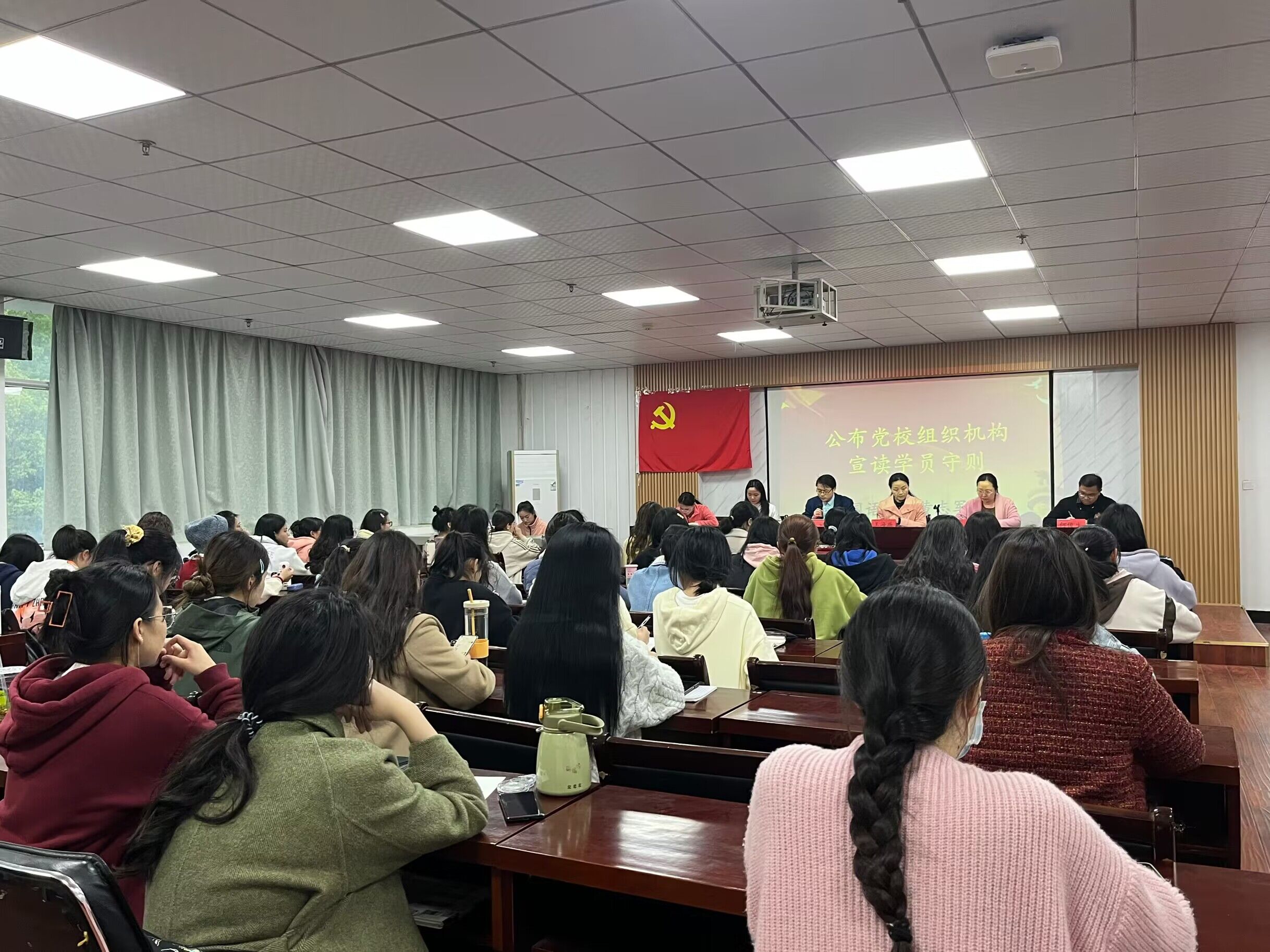 2023年4月6日下午6时30分,成人短视频 第六十六期分党校开班典礼暨党课第一讲在人文楼21B603教室正式拉开了序幕。莅临本次活动的领导嘉宾是成人短视频 党委书记王海燕、成人短视频 党委副书记曹小为、成人短视频 学生支部书记黄志军、杨梦伟和辅导员罗兰、何俊生。本次开班典礼由成人短视频 党委副书记曹小为主持。活动伊始,全体师生起立奏唱国歌。在庄严的国歌声中,本次党校开班典礼正式开始。首先,学生支部书记黄志军老师宣读了《六十六期党校培训班学员管理规定》,并勉励党校学员要严于律己、努力学习。随后,由成人短视频 “优师计划”2201班学生代表李欣燃发言,她代表所有党校成员庄重宣誓:珍惜本次学习机会,端正入党初心,恪守党校学员守则,坚定理想信念,坚决向党组织靠拢。接着,由党委书记王海燕讲话。王海燕寄予所有学员三点希望:第一,坚定理想信念,端正入党动机;第二,改正学习态度,珍惜学习机会;第三,提高自身修养,做到知行合一。王海燕书记还激励同学们在生活和学习中做好表率,不断提升理论素养,争取早日成为一名光荣的共产党员。最后,在各位领导老师的祝福与期待中,本次党校开班典礼正式结束。