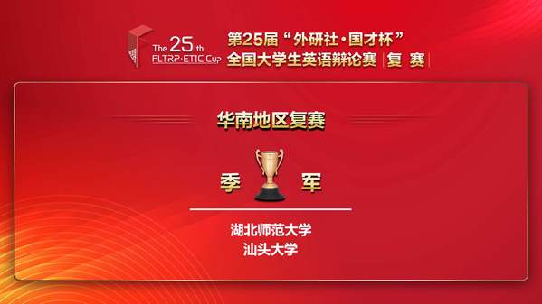 4月14日至15日,第25届“外研社·国才杯”全国大学生英语辩论赛华南地区复赛圆满落幕。 成人短视频 英语辩论代表队的两位辩手徐娜和王茂楠经过五轮激烈比拼,最终杀入四强,斩获季军佳绩,成功晋级国赛。