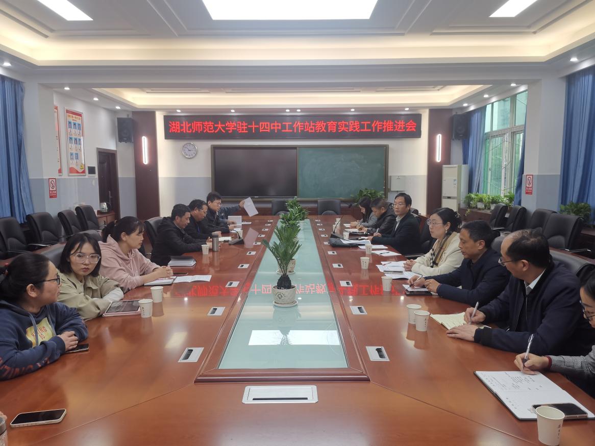 副院长龚波、英语系主任朱勇进、语言学教研室主任刘瑶瑶赴黄石十四中参加湖师大驻黄石十四中教育集团基层工作站工作推进会。黄石十四中教育集团黄石港校区党支部书记董纯裕、教学副校长夏斌及各学科组组长出席了本次会议。黄石市教育教学综合办公室指导专家徐小林、黄石市教育局教师管理科严娜、湖师大教师教育学院余云峰及城环学院、历史学院课程与教学论团队也参与了本次工作推进会。