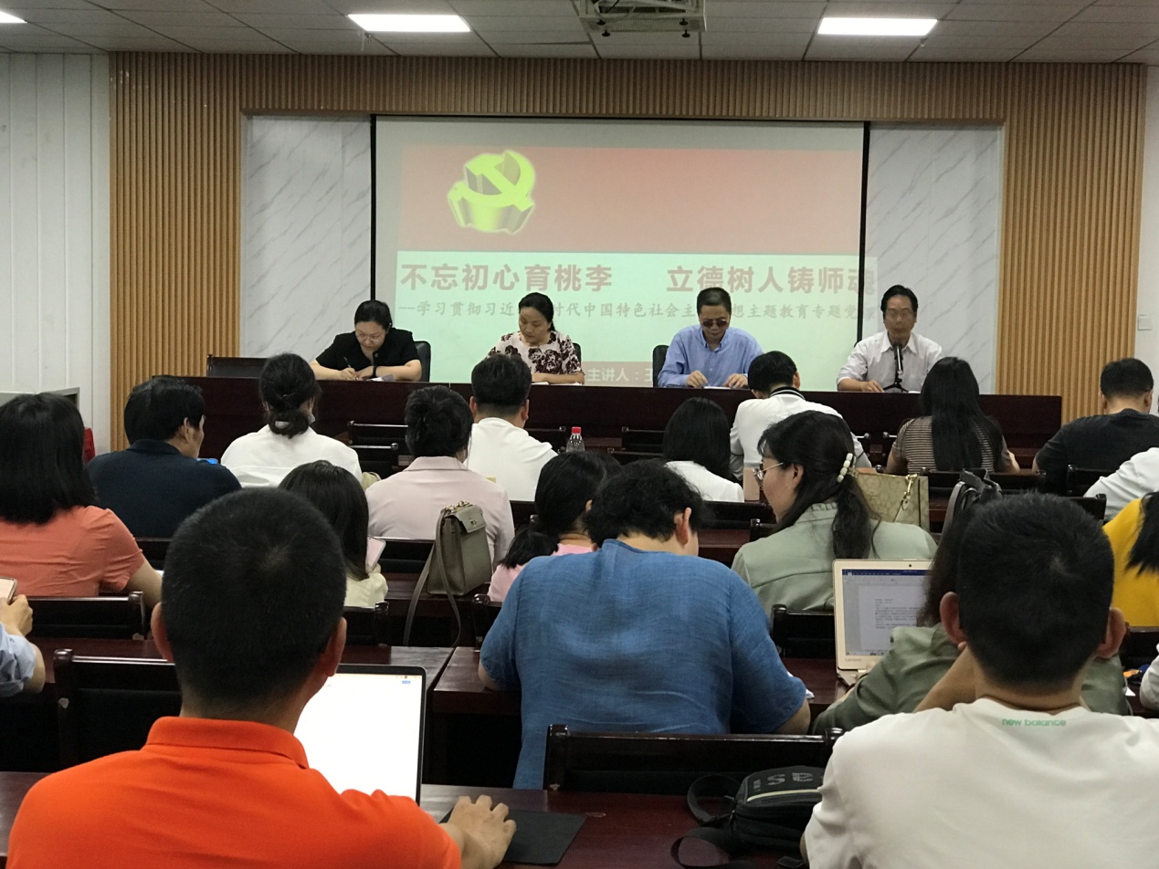 王海燕以《不忘初心育桃李 立德树人铸师魂》为题,从深刻理解习近平新时代中国特色社会主义思想的理论体系、习近平总书记教育重要论述的科学内涵、用习近平新时代中国特色社会主义思想铸魂育人等三个方面进行了阐述。