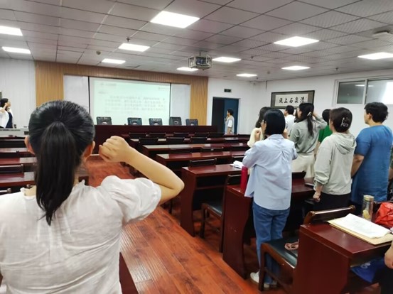 随后党委书记王海燕以《不忘初心育桃李 立德树人铸师魂》为题为党员师生讲了一堂党课,她从深刻理解习近平新时代中国特色社会主义思想的理论体系、习近平总书记教育重要论述的科学内涵、用习近平新时代中国特色社会主义思想铸魂育人等三个方面进行了阐述。王海燕指出,站在新的历史起点上,我们要坚持以习近平新时代中国特色社会主义思想为指导,深入学习贯彻党的二十大精神,扎实开展习近平新时代中国特色社会主义思想主题教育,持续推动学院高质量发展,推动立德树人根本任务走深走实。