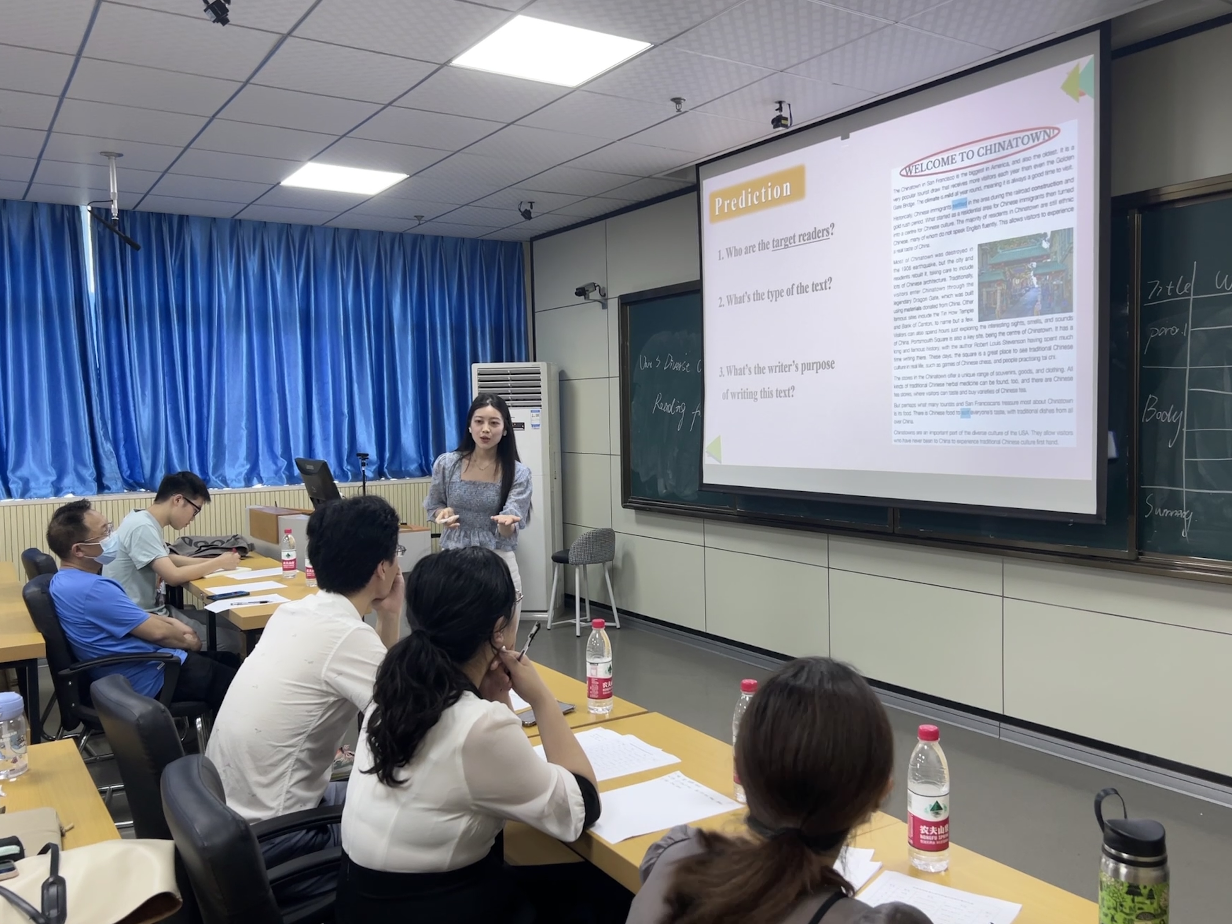 2023年5月21日,为加强 成人短视频 学生的英语基本功训练,提升英语教学技能,展现教师风采, 成人短视频 在21B602举办教师技能大赛决赛,参与本次比赛的评委有伍文忠老师、董志浩老师、刘瑶瑶老师、殷丹老师以及20级优秀研究生代表高伟新同学。