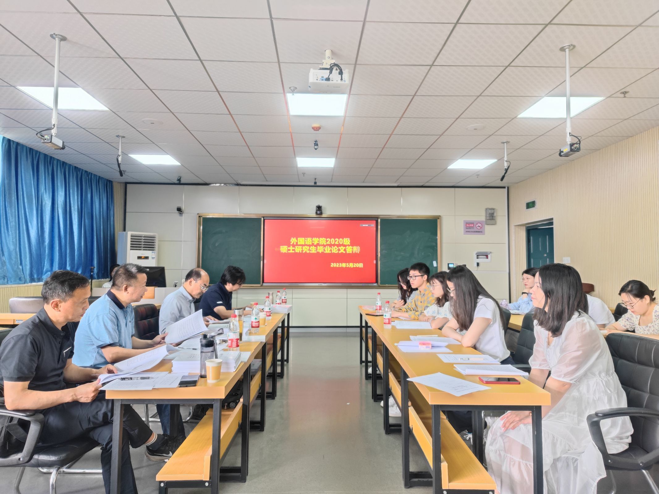 2023年5月20日, 成人短视频 在21B602会议室成功举行了2023届学科教学(英语)专业硕士研究生毕业论文答辩,共有34位研究生参加了答辩。