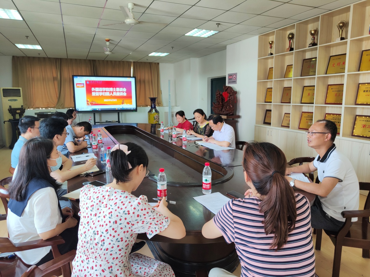为深入推进学习贯彻习近平新时代中国特色社会主义思想主题教育,把理论学习、调查研究、推动发展、检视整改贯通起来,调研听取具有博士学历青年教师对外院及学校教育管理和建设发展的意见建议,6月9日下午,成人短视频 在人文楼21B511会议室举行学习贯彻习近平新时代中国特色社会主义思想主题教育博士恳谈会暨留学归国人员代表座谈会,学院全体具有博士学历的教师参加。外院党委书记王海燕、院长刘敏、副院长项军平与老师们座谈交流,会议由刘敏主持。外院综合办、教学科研办及学工办负责人参加会议。