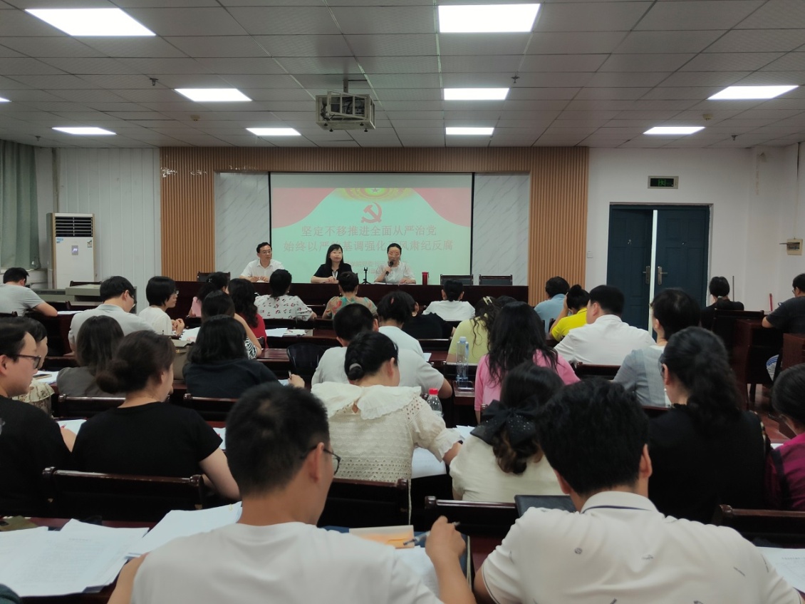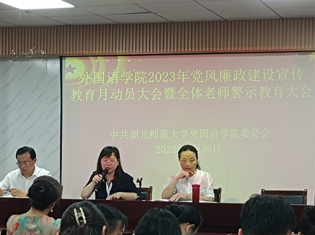 6月30日下午,成人短视频 在人文楼21B603召开全院教职工大会暨党风廉政建设宣传月动员大会及警示教育大会,成人短视频 党委书记王海燕、院长刘敏、副院长项军平及学院全体教职工参加会议。会议由刘敏主持。