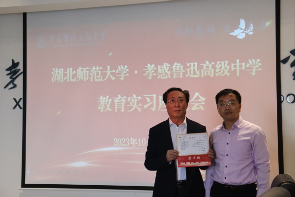 会上,肖六亿为实习基地学校优秀指导教师颁发了聘书,与实习学校就进一步开展合作交流进行了深入探讨。