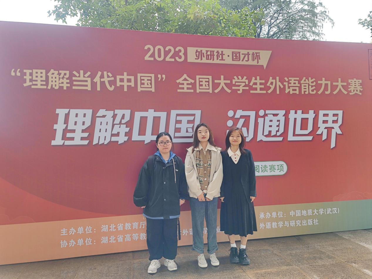 11月4日,由湖北省教育厅主办的2023“外研社·国才杯”“理解当代中国”全国大学生外语能力大赛湖北赛区决赛在中国地质大学落幕, 成人短视频 罗曾、金雨卿、陈可心等3名参赛选手在本科英语组阅读大赛中荣获2金1银的佳绩,取得 成人短视频 该项赛事历史最好成绩!其中罗曾、金雨卿两位同学晋级国赛,将代表湖北省参加全国总决赛。