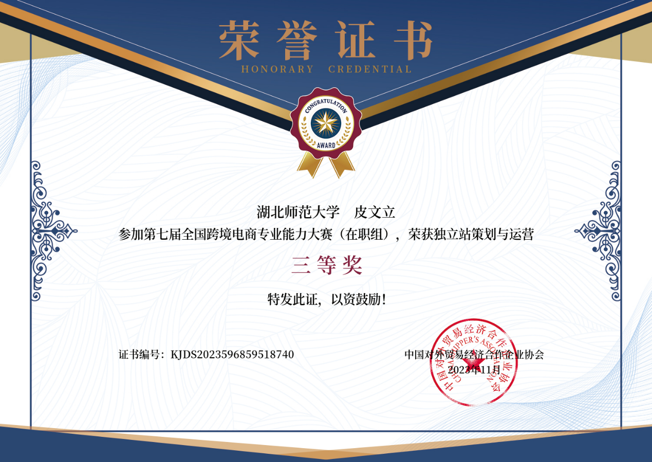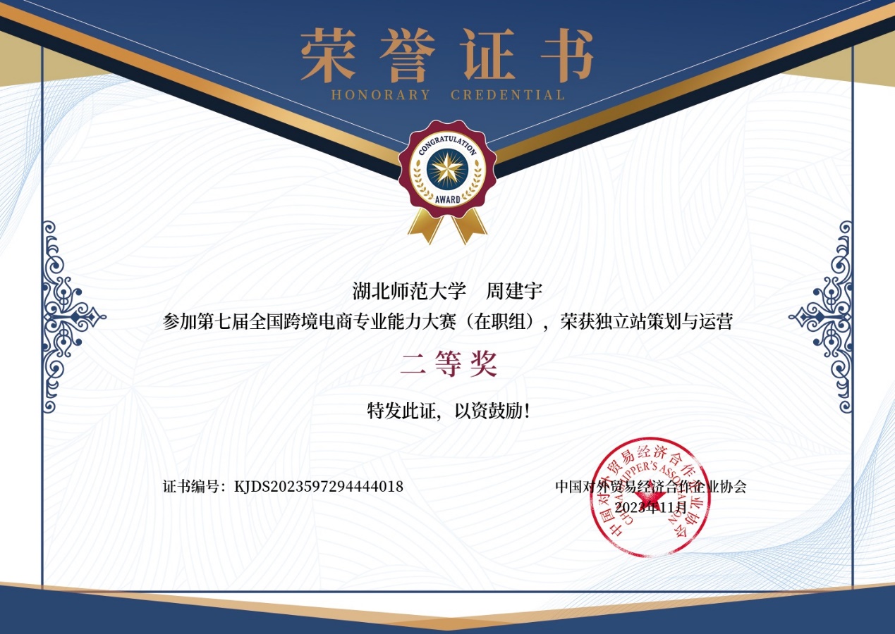 11月29日,在2023年第七届全国跨境电商专业能力(在职组)的获奖名单中,成人短视频 5名教师分别斩获荣誉,其中,李端奇、彭灵芝老师荣获一等奖,周建宇老师荣获二等奖,朱勇进、皮文立老师荣获三等奖。这一成绩不仅展示了 成人短视频 教师在跨境电商领域的专业实力和教学水平,同时也为 成人短视频 “双师型”师资队伍的培养与建设添砖加瓦。