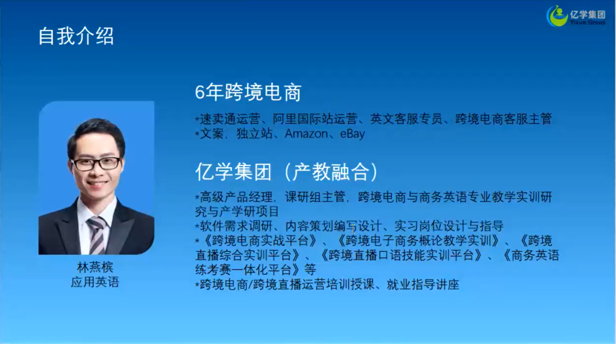 12月3日下午,为了提高商务英语专业学生职业技能知识,帮助学生了解跨境电商的基本规律,提升对跨境电商的岗位认知,培养学生运用专业知识的能力、实践能力, 成人短视频 特别邀请福建亿学教育科技集团林燕槟老师为同学们作了题为“跨境电商行业认知与岗位见习”的专题见习讲座。商务英语专业21级、22级、23级及部分法语专业的学生参加了本次讲座,商务英语教研室主任皮文立主持本次活动。