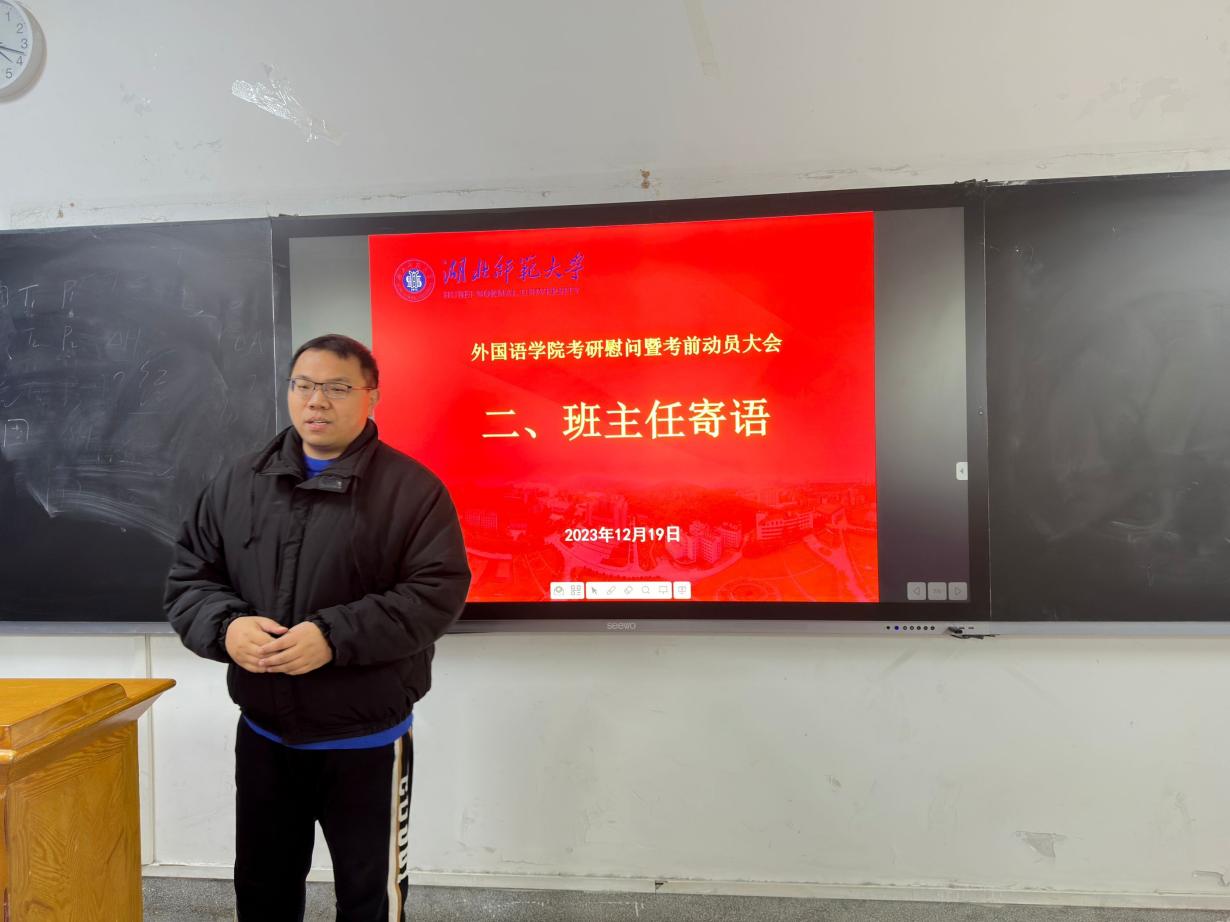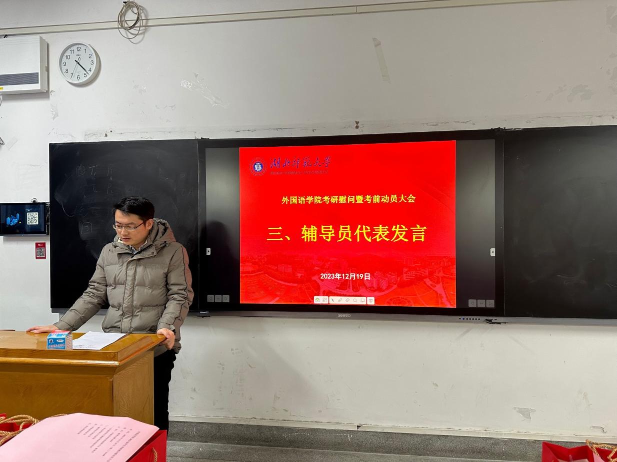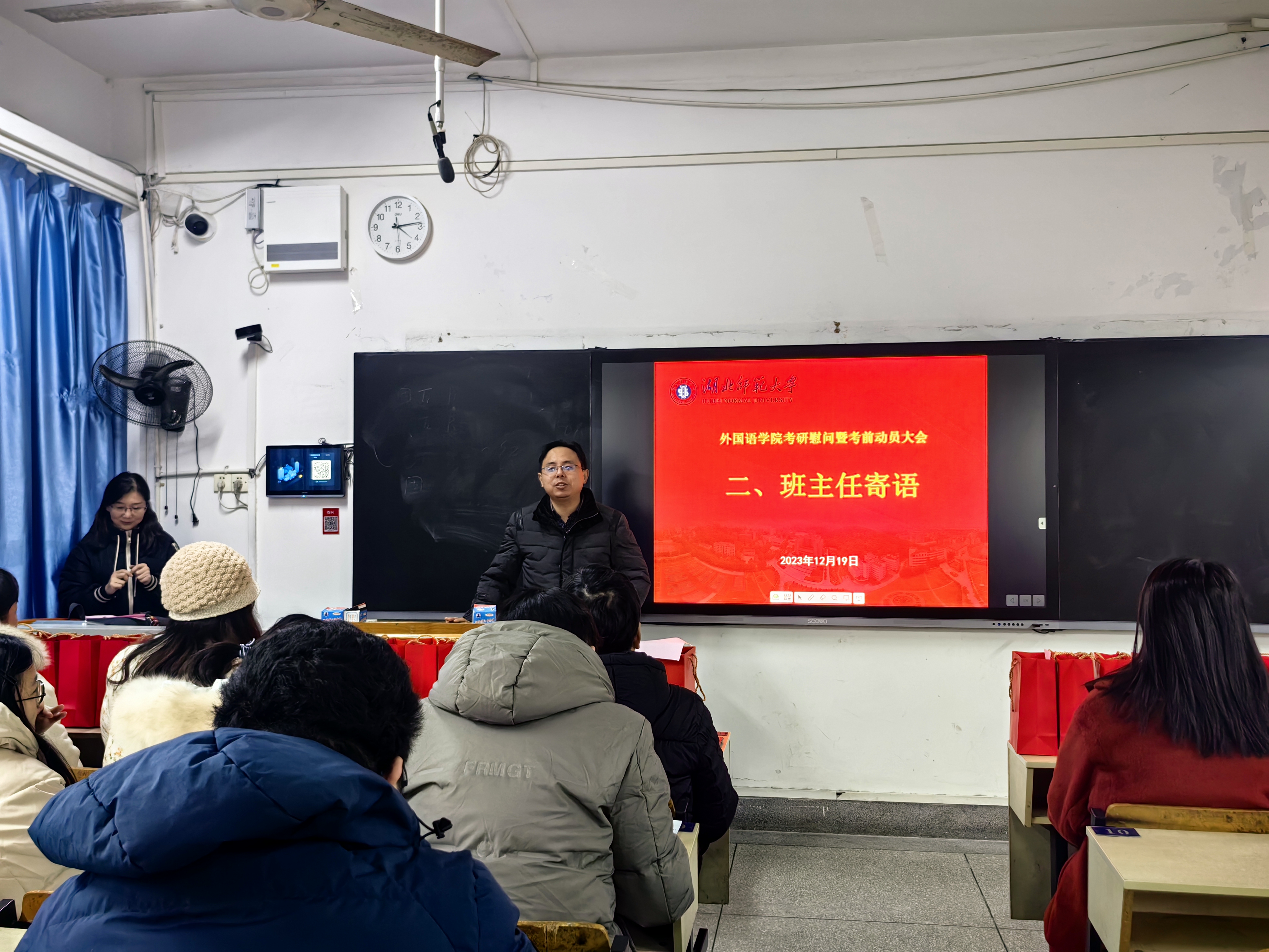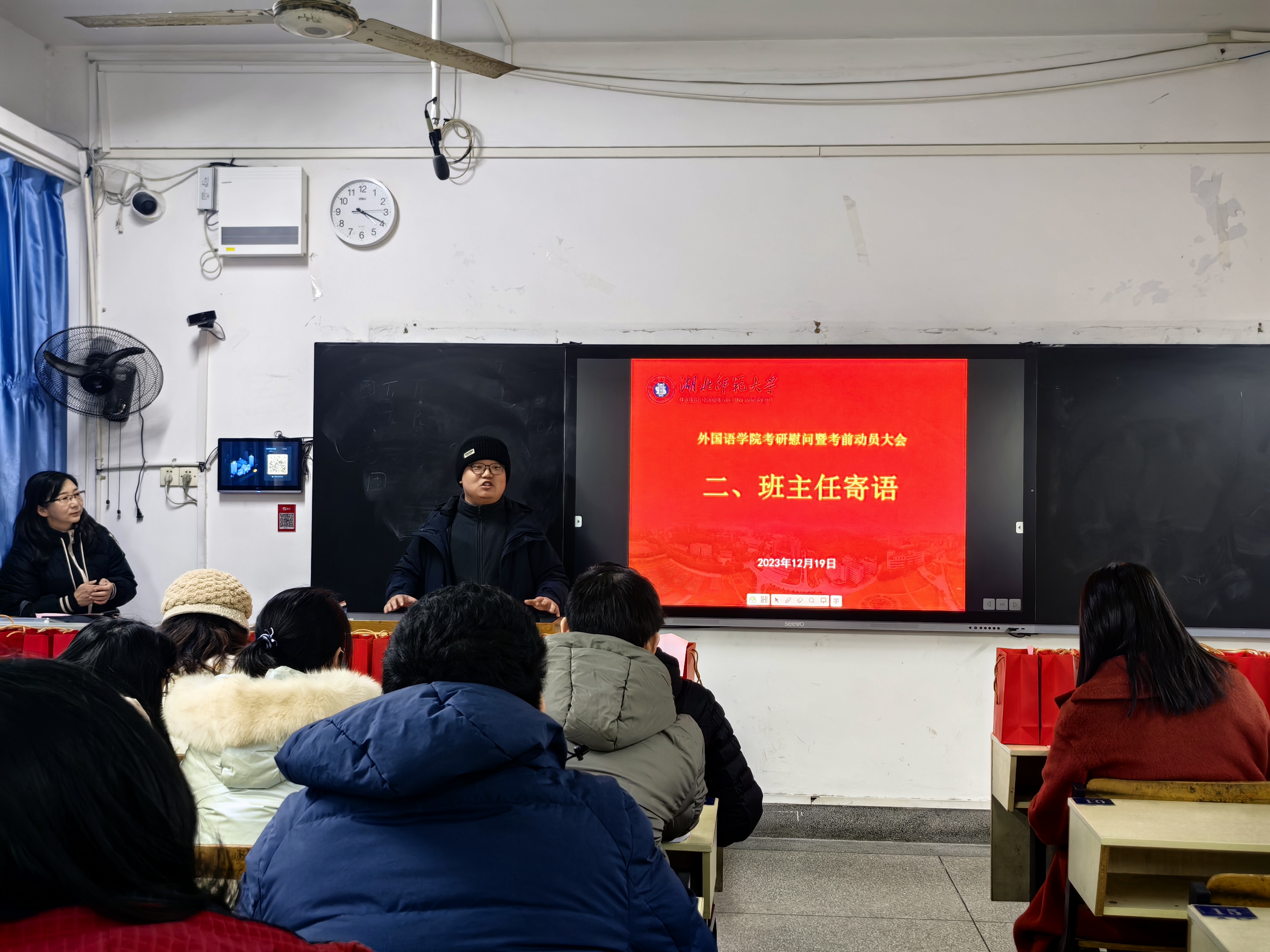 研究生考试即将来临,为更好地激励考研学子,成人短视频 于12月19日下午4时在教育大楼1101教室召开考研慰问暨考前动员大会,为即将参加研究生考试的同学提供必要的指导和动力。此次大会由成人短视频 党委副书记蔡惠芳主持。出席会议的有校学工部、人武部部长李洁、副部长胡红贵、成人短视频 领导班子全体成员、辅导员、20级毕业班班主任以及2024届考研学生。