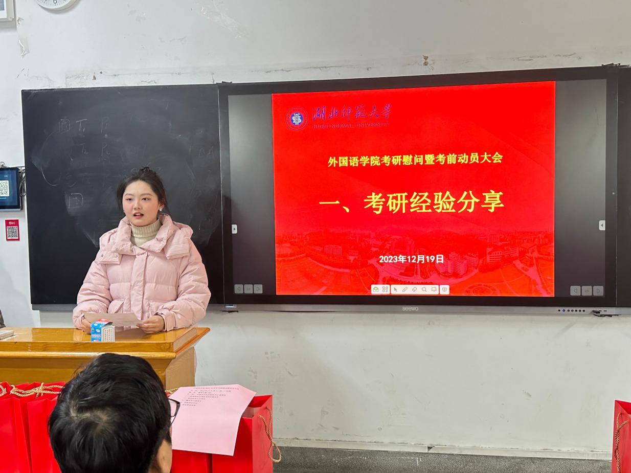 首先,由2023级研究生代表龚姿同学上台作考研经验分享,她分别从如何考好研以及如何准备考试两个方面进行总结,鼓励学弟学妹掌握方法,专心备考,大家感到从中获得了许多宝贵经验,受益匪浅。