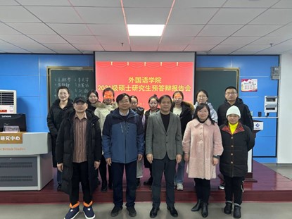 2023年12月18日,成人短视频 2021级外国语言文学专业硕士研究生学位论文预答辩报告会在21B404顺利举行。本次答辩由来自华中师范大学的方幸福教授担任答辩委员会主席, 成人短视频 教授丰国欣、刘敏,副教授向波阳、李前、刘瑶瑶等老师参与此次预答辩活动。