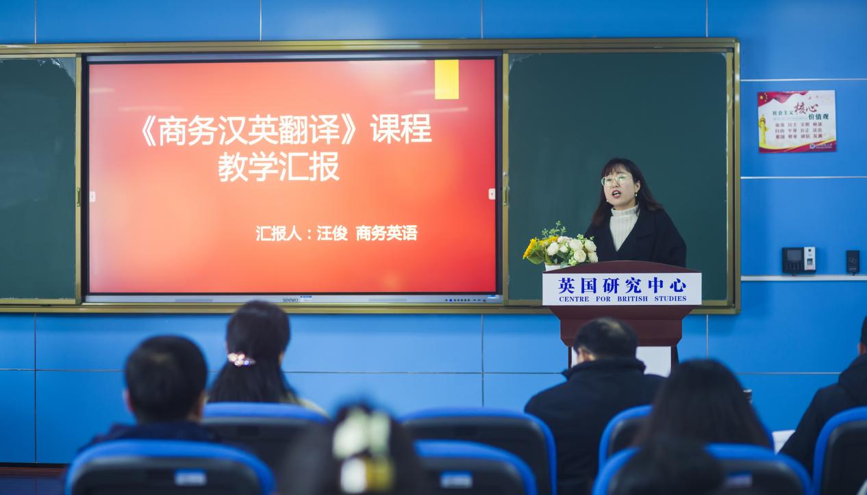 汪俊老师分享了在《商务汉英翻译》课程中《理解当代中国》教材的融合式教学情况。根据商务英语专业的特点,有机选取涉及翻译理论和时政文献语言特征的核心章节,以小组合作的形式,开展多元化主题的翻译实践活动,人才培养和课程建设成效显著。