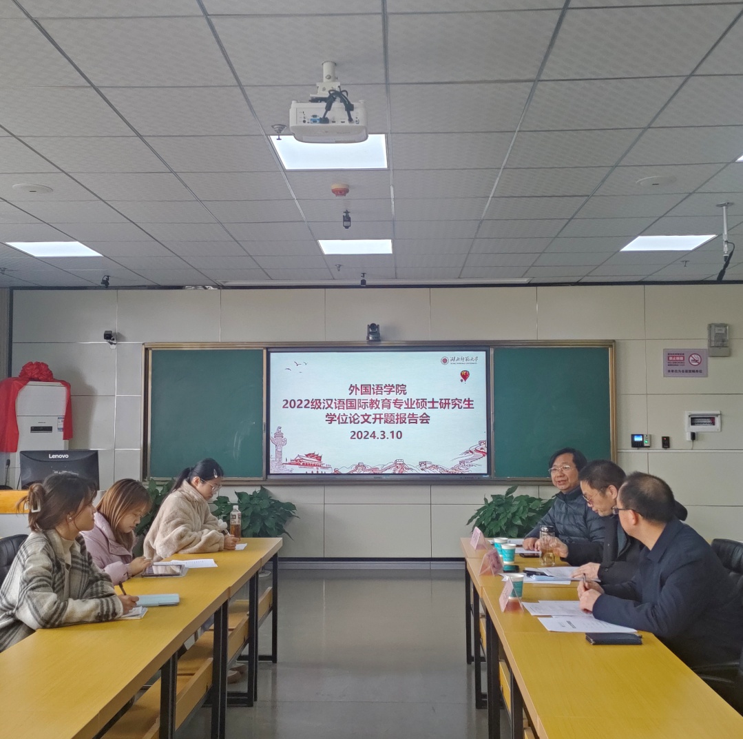 3月10日下午,成人短视频 2022级汉语国际教育专业硕士研究生学位论文开题报告会在人文楼21B602、21B604会议室举行。此次论文开题报告会分两组进行。第一组由李治平教授担任组长,成员为项军平副教授和罗姝芳副教授;第二组由丰国欣教授担任组长,成员为南潮教授和车录彬副教授。 成人短视频 2022级汉语国际教育专业7位硕士研究生作了开题汇报,2023级汉语国际教育硕士研究生旁听了此次开题报告会。
