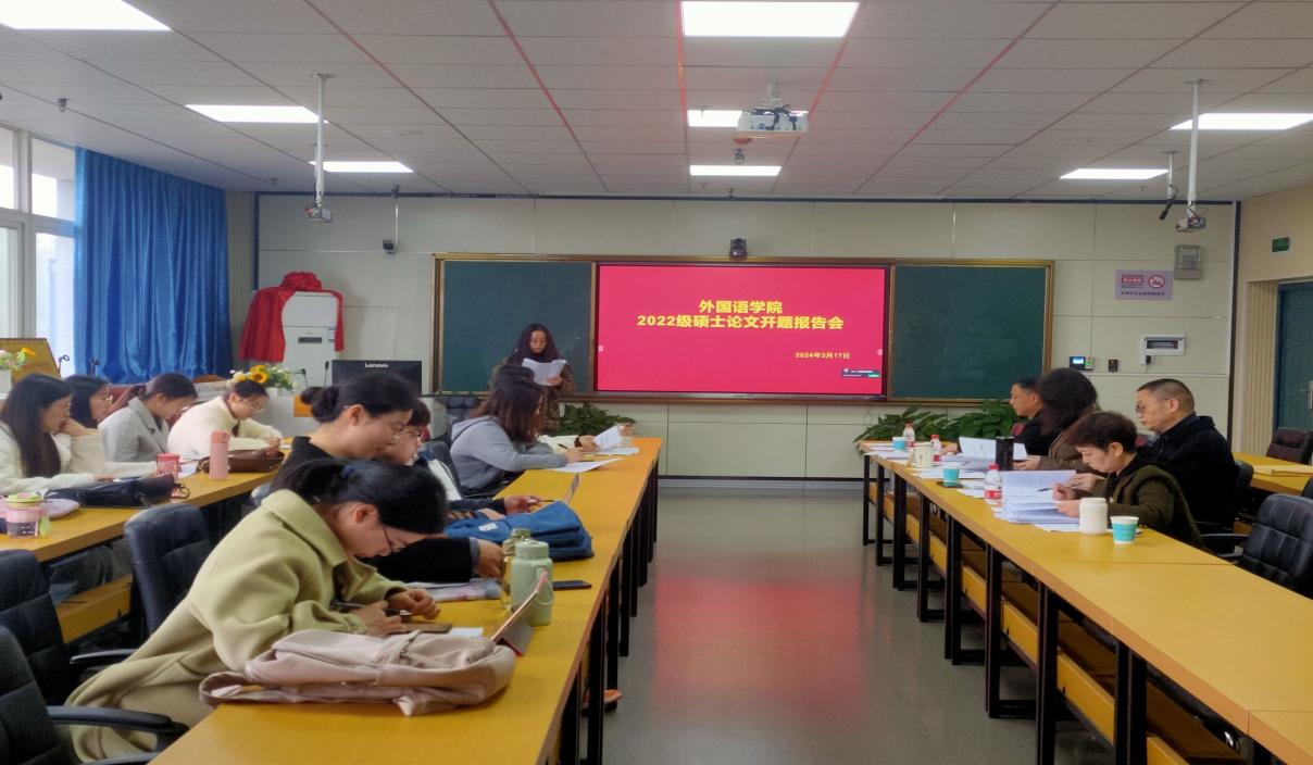 3月17日,成人短视频 2022级学科教学(英语)专业硕士研究生学位论文开题报告会在人文楼举行。此次开题报告会参与的老师有丰国欣教授、南潮教授、郑桃云教授、余云峰副教授、皮晓燕副教授、项军平副教授、张小胜副教授等。成人短视频 2022级学科教学(英语)专业21位硕士研究生作了开题汇报,2023级学科教学(英语)硕士研究生旁听了此次开题报告会。