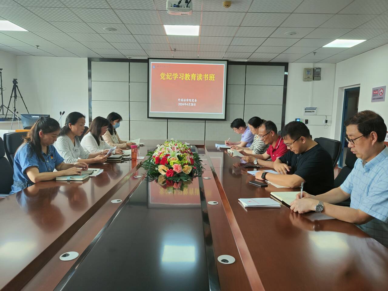4月28日下午,成人短视频 党委举办党纪学习教育读书班,专题学习新修订的《中国共产党纪律处分条例》(以下简称《条例》)。外院党委书记王海燕主持读书班学习并讲话,外院党委委员和各支部书记参加学习。