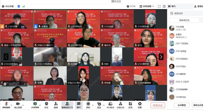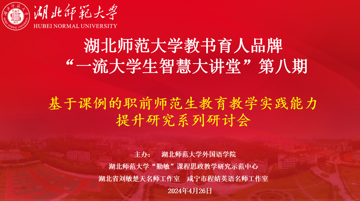 4月24日晚,成人短视频 通过腾讯会议举办“一流大学生智慧大讲堂”第八期“基于课例的职前师范生教育教学实践能力提升研讨会”。成人短视频 教务处副处长、教学质量监测与评估中心副主任龚波、成人短视频 副院长项军平、成人短视频 英语语言教育创新研究中心主任、硕士生导师高旭阳、硕士生导师余云峰、院长助理朱勇进、研究生办公室主任董志浩,咸宁市程婧名师工作室优秀教师牟寒、成人短视频 “优师计划”师范生、成人短视频 23级课程与教学论(英语)研究生和学科教学(英语)研究生等参加了此次会议。本次会议由朱勇进主持。