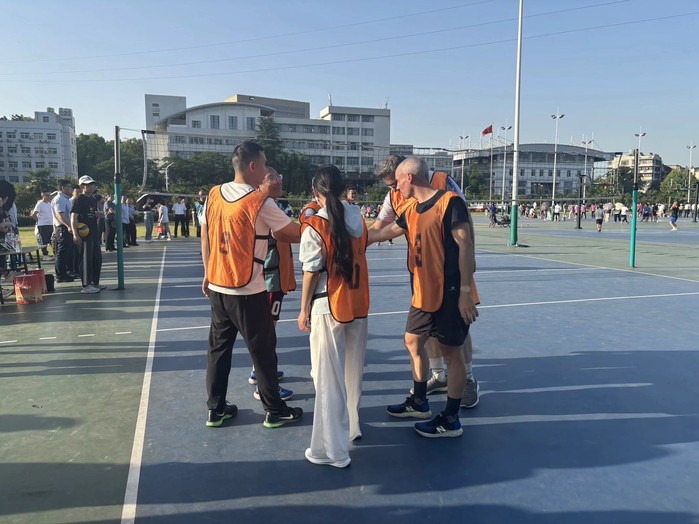 在第四局的激烈对抗中,双方比分交替上升,场面一度胶着,每赢一分都极为艰难。外院排球队虽已拼尽全力,但最终因几次关键球处理上的微小失误以及体力消耗过大的影响,未能抵挡住联队的攻势,遗憾落败。尽管如此,队员们也没有丝毫放弃,坚持到了最后一刻,让我们见识了竞技体育精神的魅力,尤其是外院赵凯老师的一记“脚球”再次点燃了全场,队员们充分尊重比赛,尊重对手的模样,令人钦佩,大比分2:2拉平。