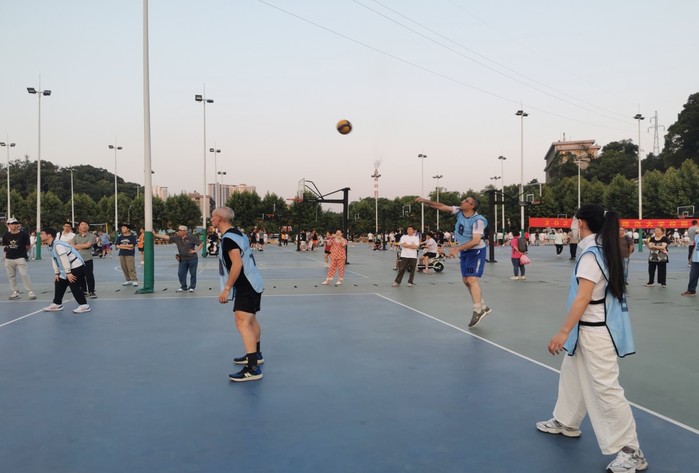 5月17日下午5时20分,外院教职工排球队与生科院、继教、图书馆联队在灯光球场展开了激动人心的2024年教职工排球赛总决赛。决赛采取五局三胜制,比赛在观众的热烈掌声中拉开序幕,外院教职工排球队迅速进入状态,凭借默契的配合和精准的扣杀,以稳定的发挥赢得了首局胜利。场边啦啦队的加油声呐喊声此起彼伏,为外院排球队注入了无尽动力。